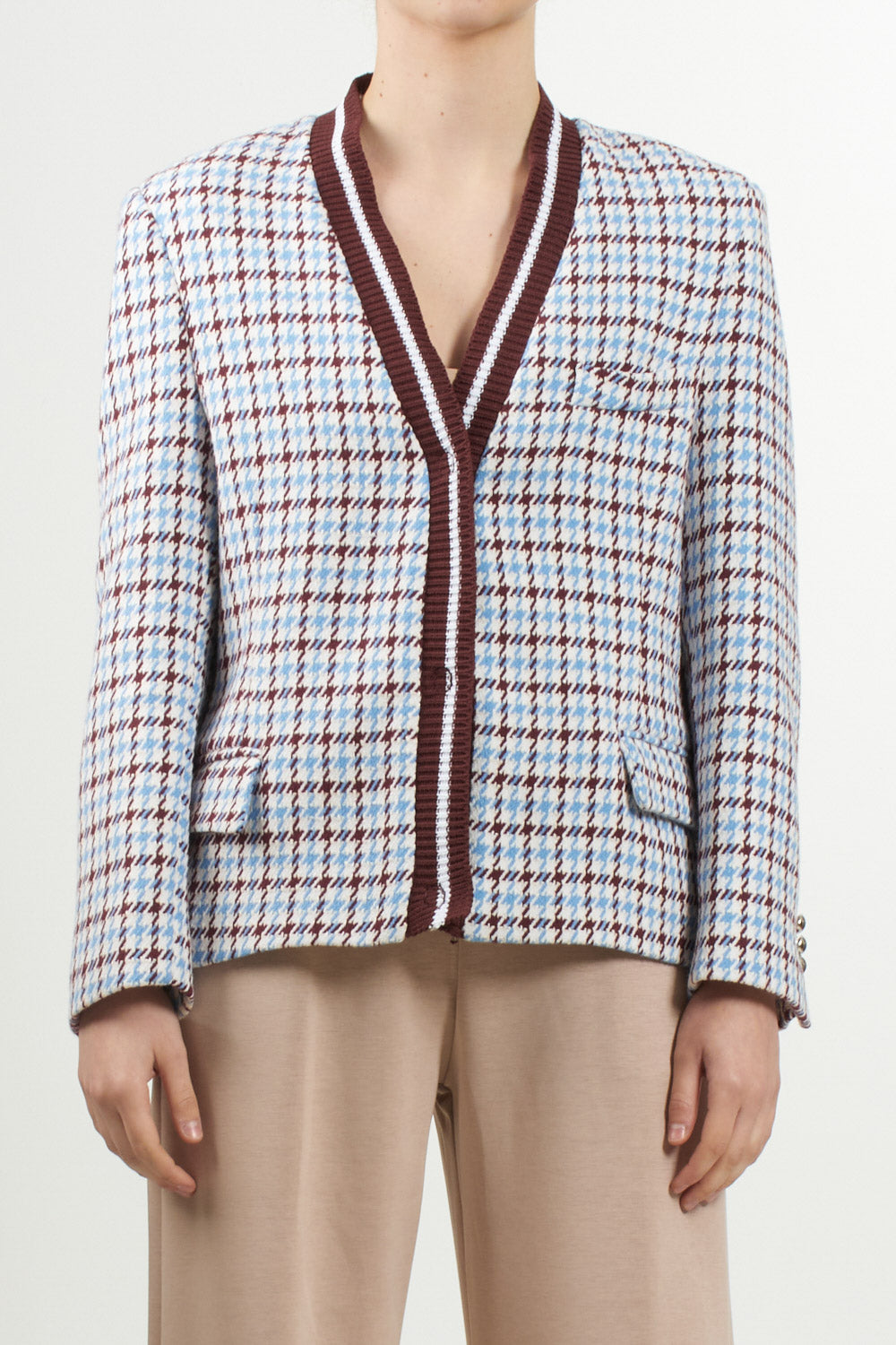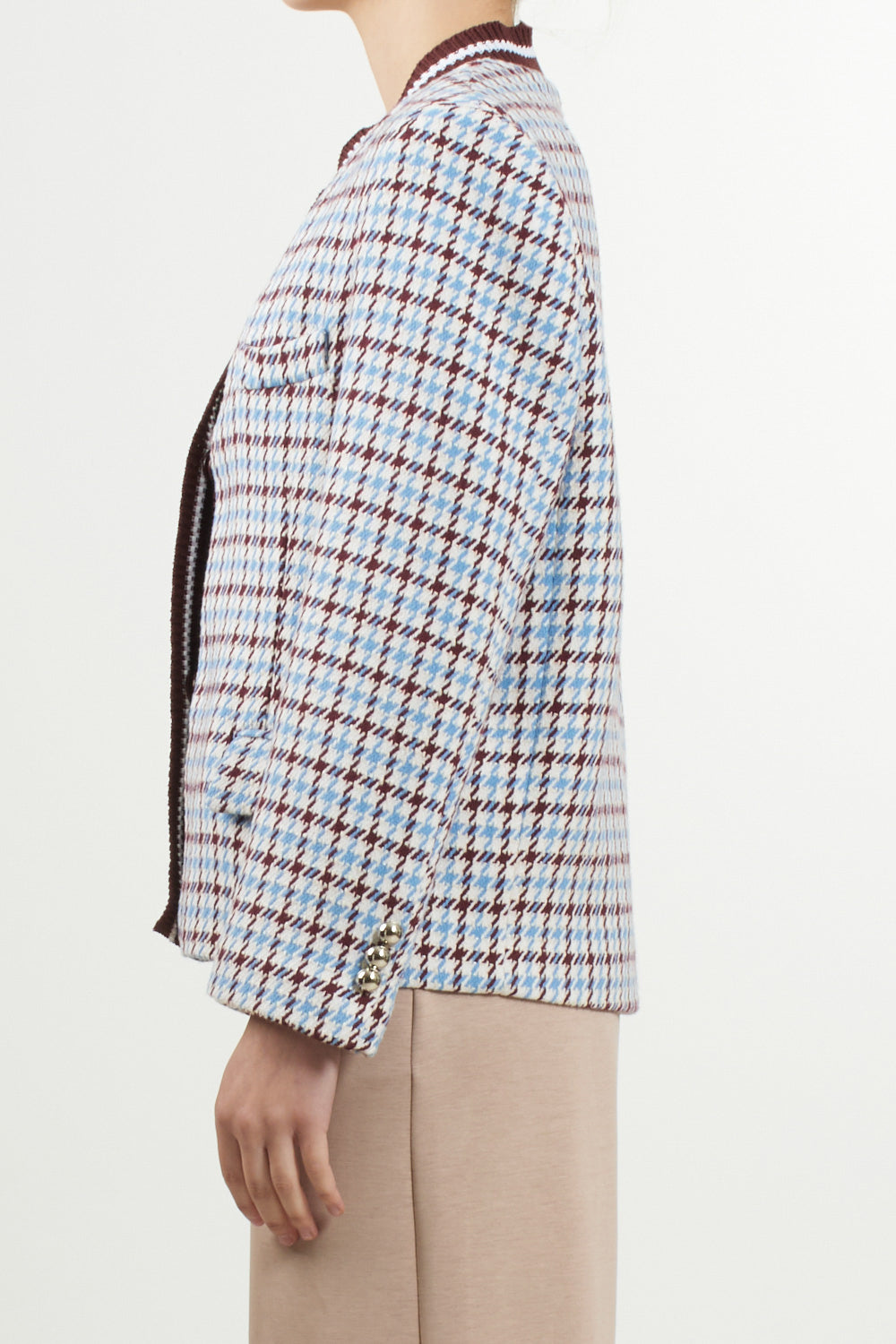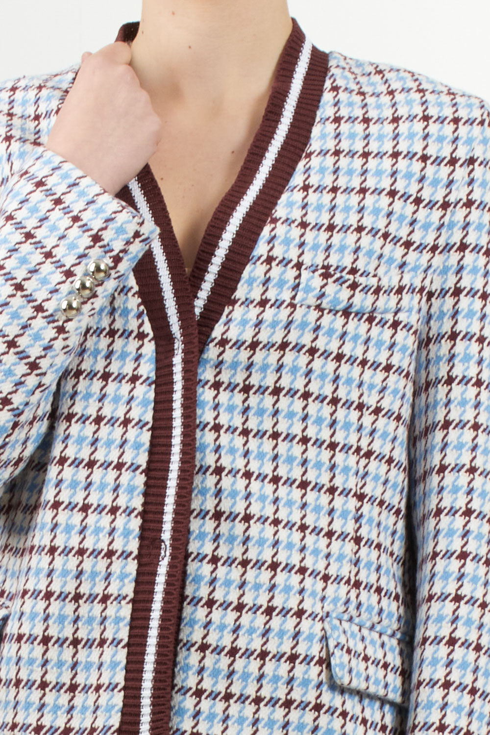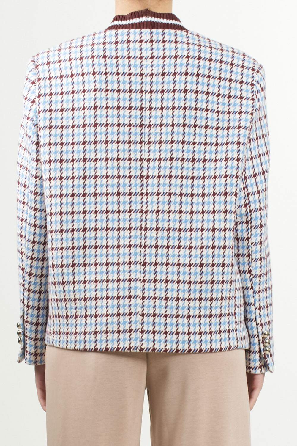 Straight-cut jacket with multicolor houndstooth pattern, ideal for adding a touch of personality to your outfit. Double-breasted closure with gold buttons and front patch pockets, for a contemporary and decisive style.