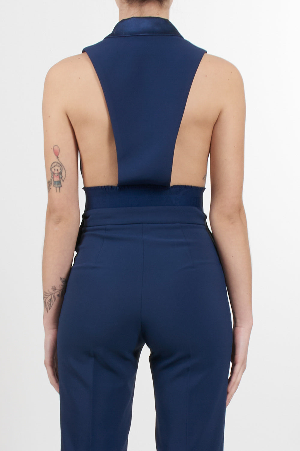Elisabetta Franchi waistcoat in light crepe, tuxedo line, front fastening with hooks, wide peak lapel in shiny satin that falls freely creating a scarf effect, back with elastic insert and tone-on-tone lettering logo, monogram satin lining