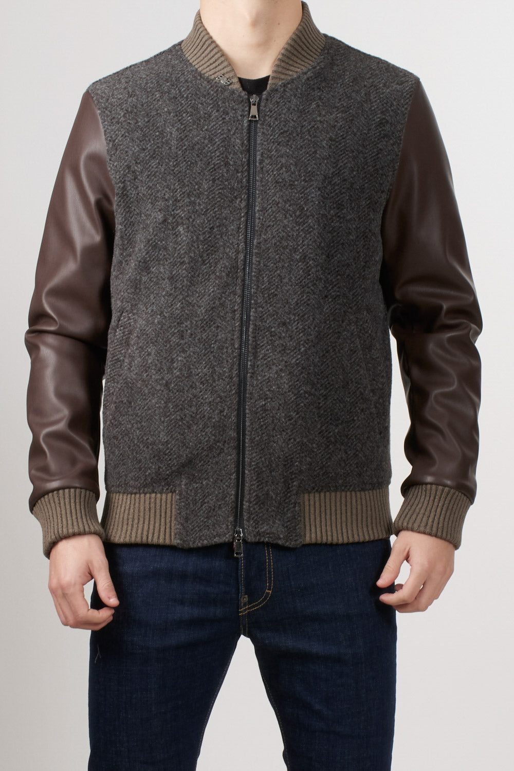 Faux leather sleeve jacket