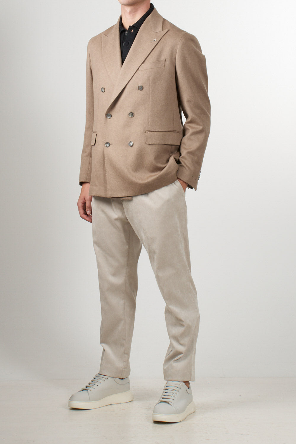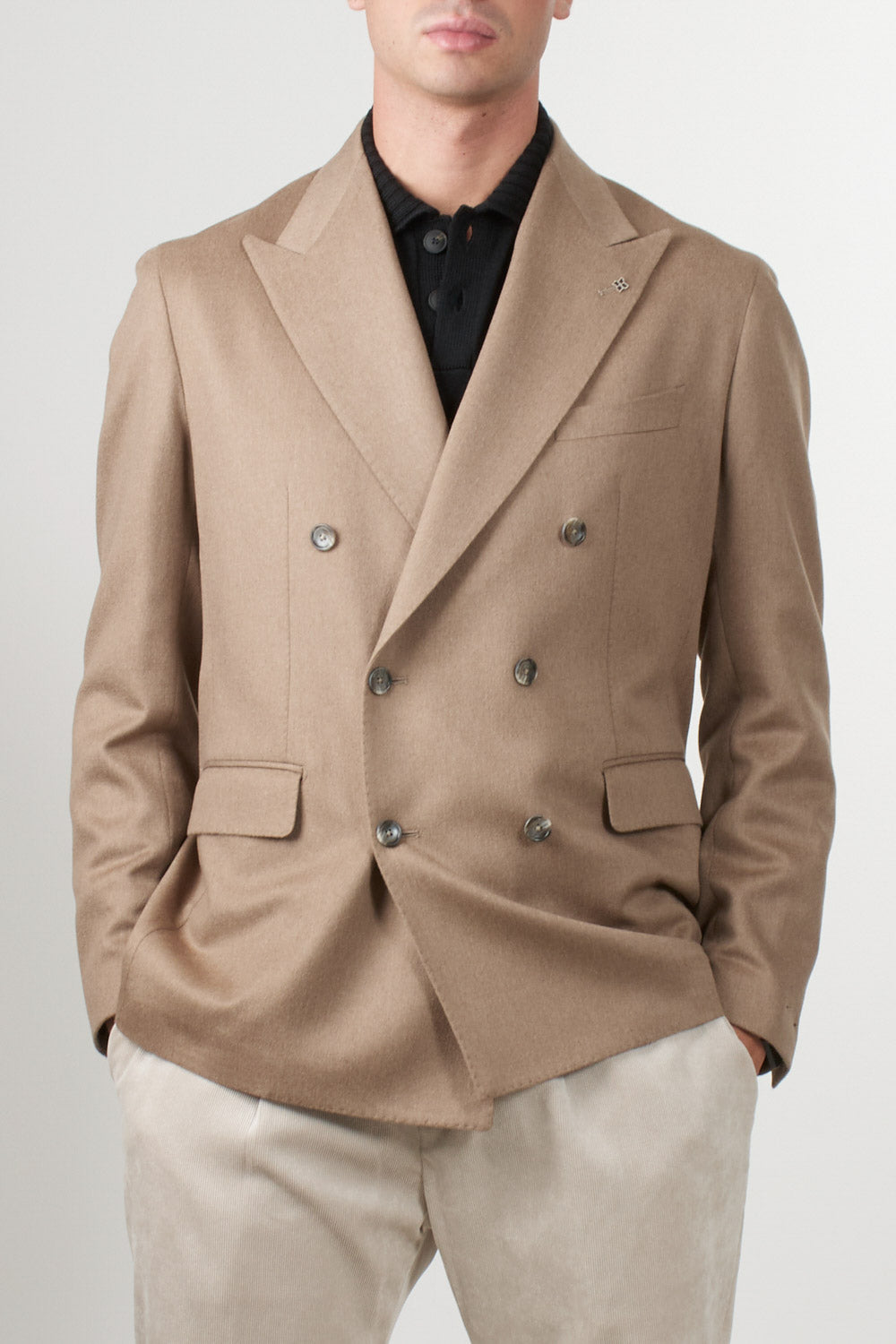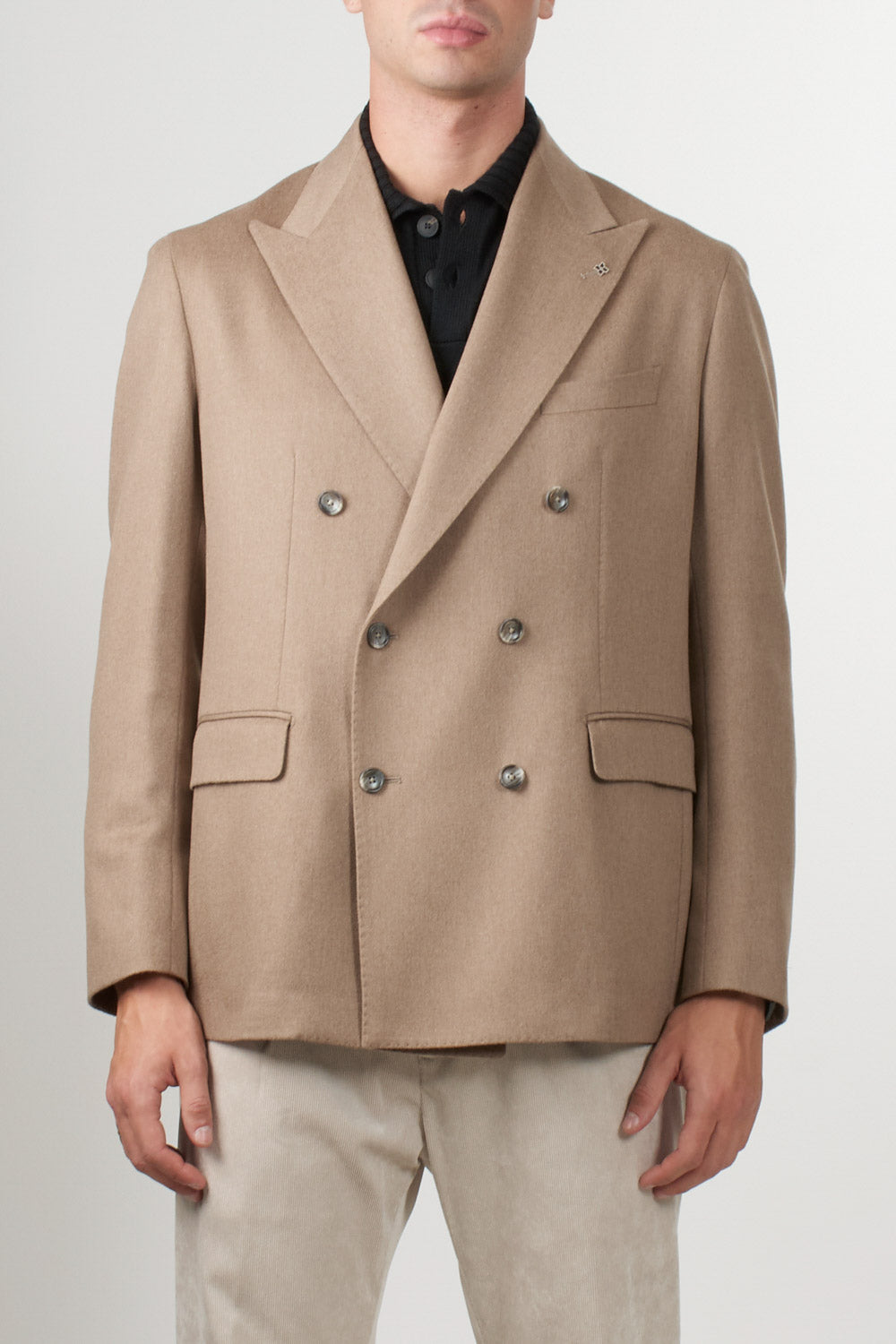 Double-breasted camel jacket