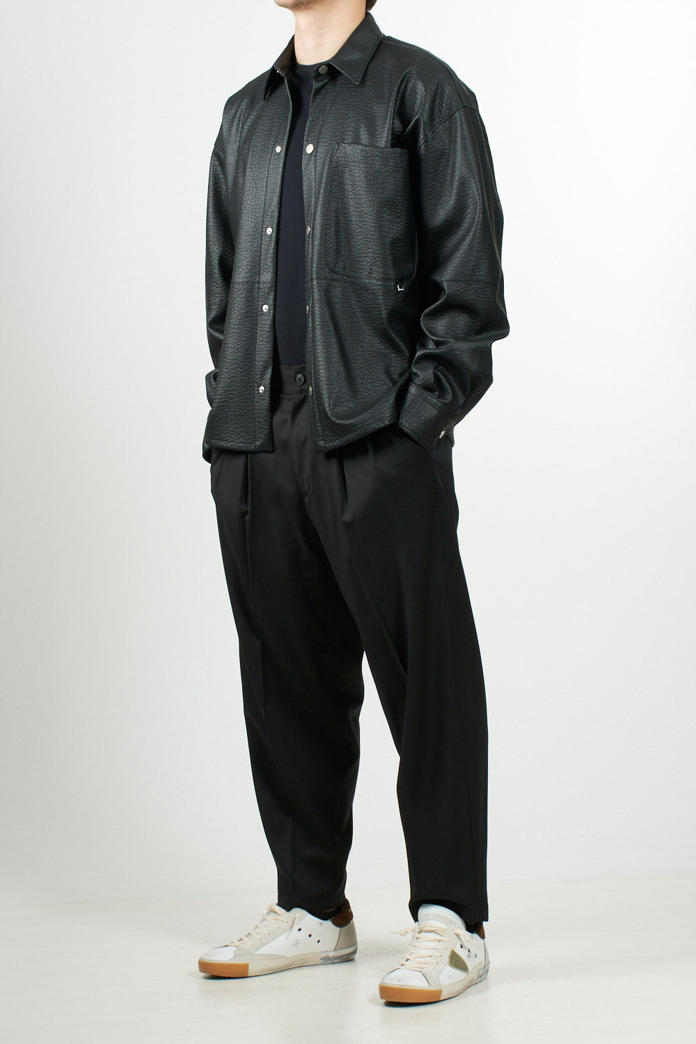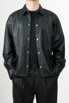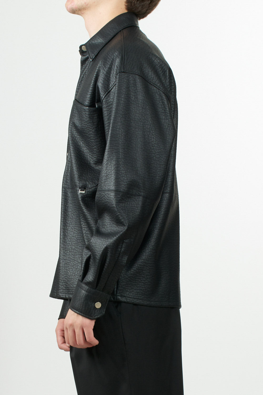 This Im Brian jacket features a modern and bold design, crafted from a leather-look material with a hammered texture. It features a snap-button front closure and a chest pocket. The relaxed fit and classic collar lend it a contemporary and versatile look.