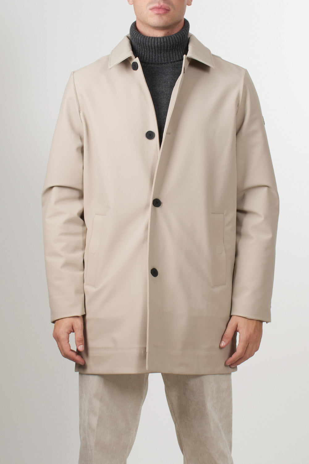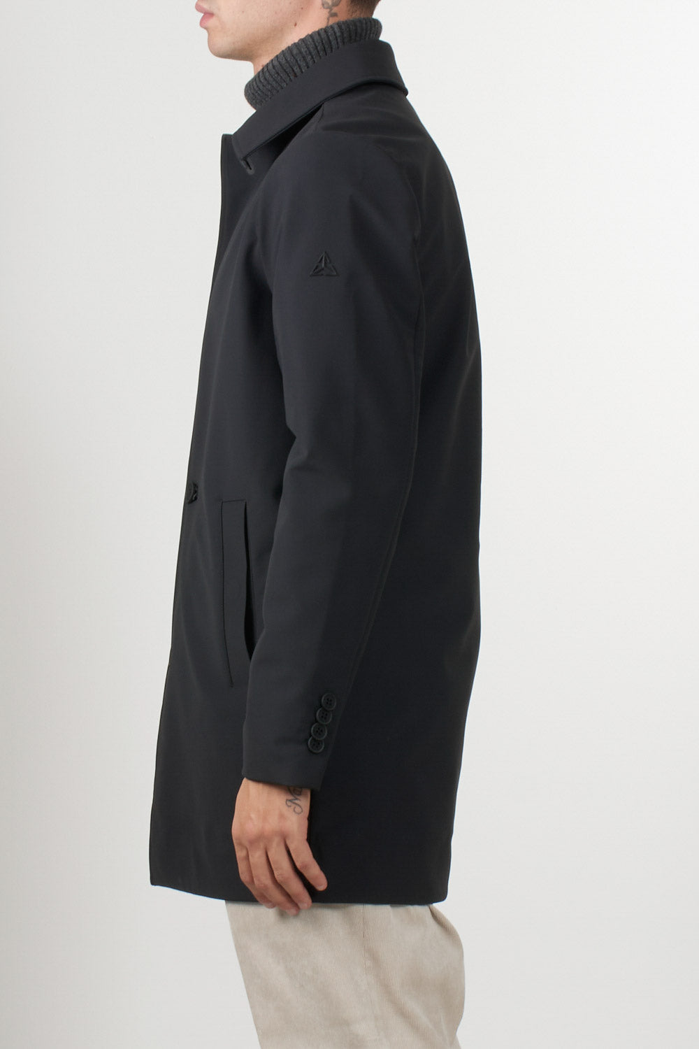 This Heskimo coat features a clean, minimal design, a front button closure, a classic collar, and side welt pockets. The interior is lined with Thermo Insulation System technology, ensuring thermal insulation and comfort even on the coldest days. Perfect for refined, urban looks.
