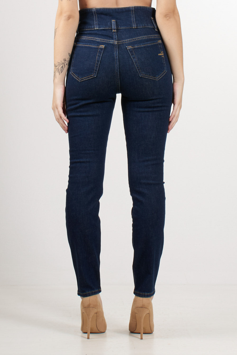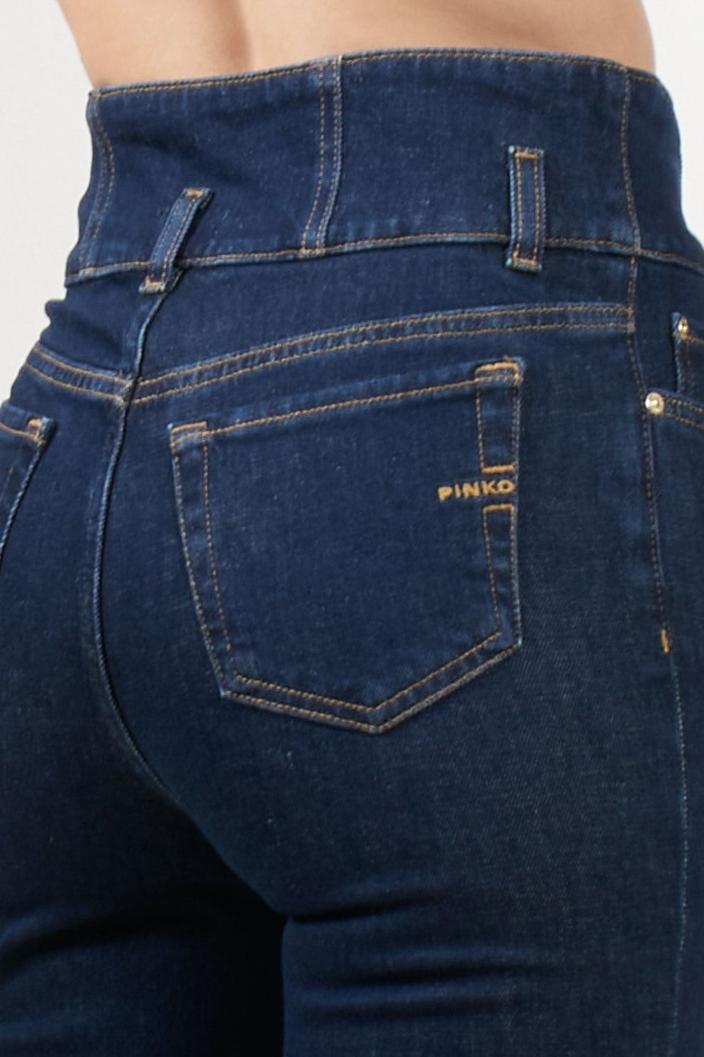 High-waisted jeans from Pinko, featuring a fitted silhouette and cotton denim construction, a structured high waistband, double button placket and contrasting stitching, Pinko logo embroidered on the back pocket.