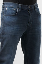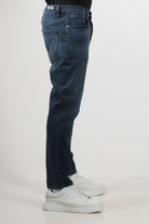 Brighton jeans by Dondup, carrot fit, medium waist, button and zip fastening, five pockets and belt loops, metal micro logo on the back
