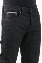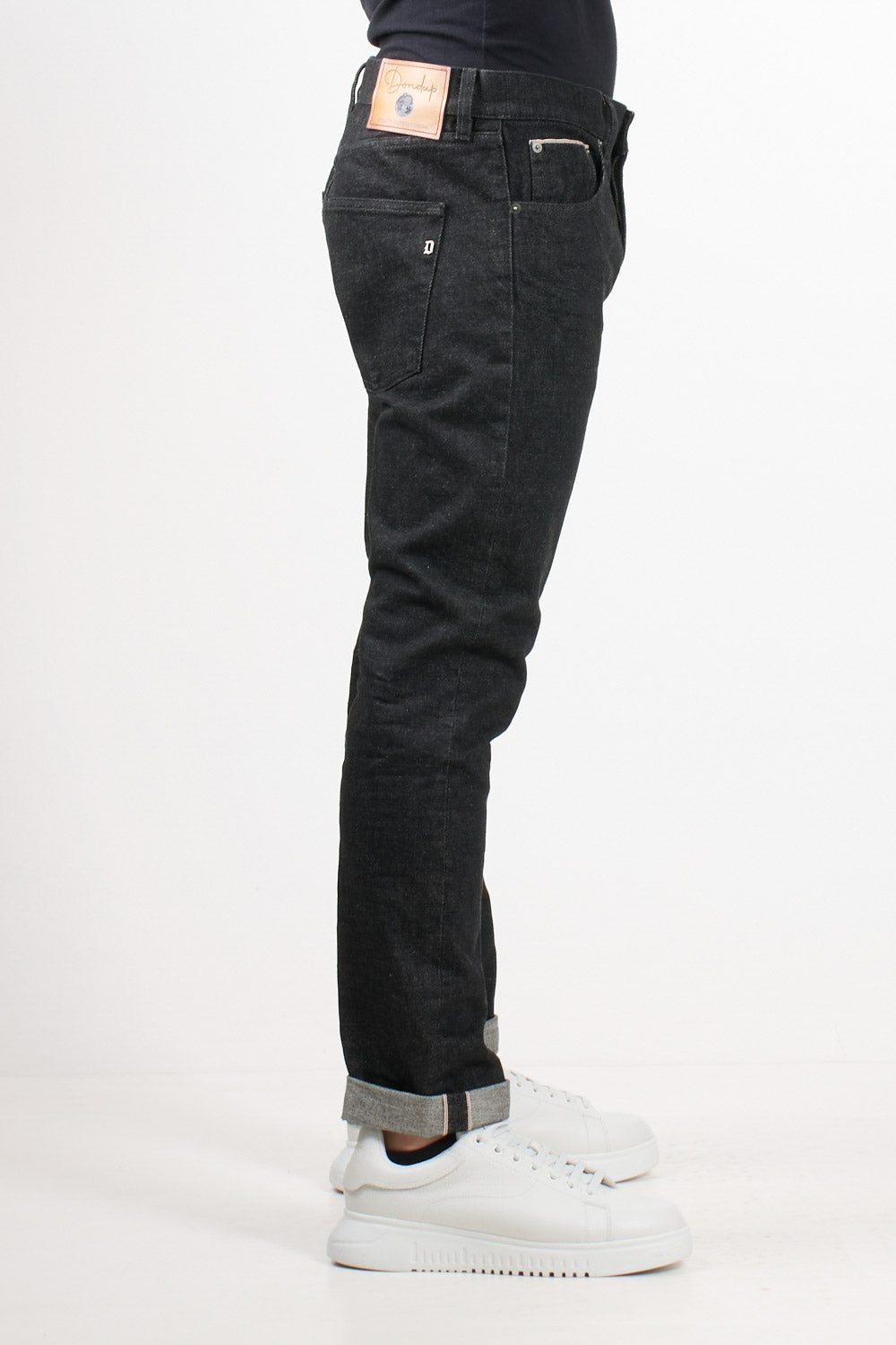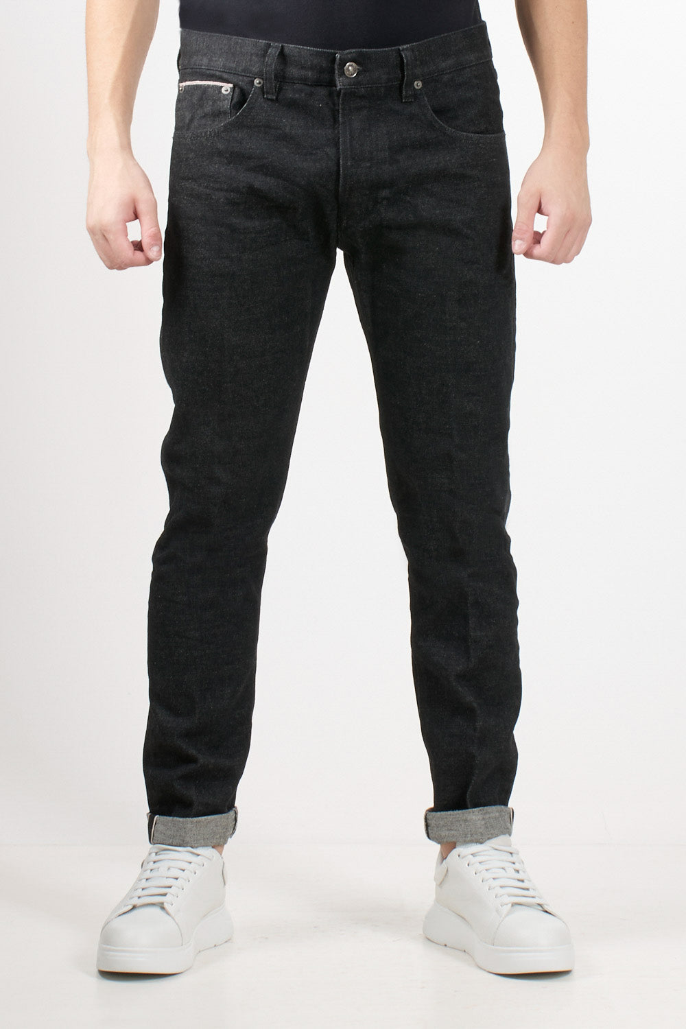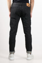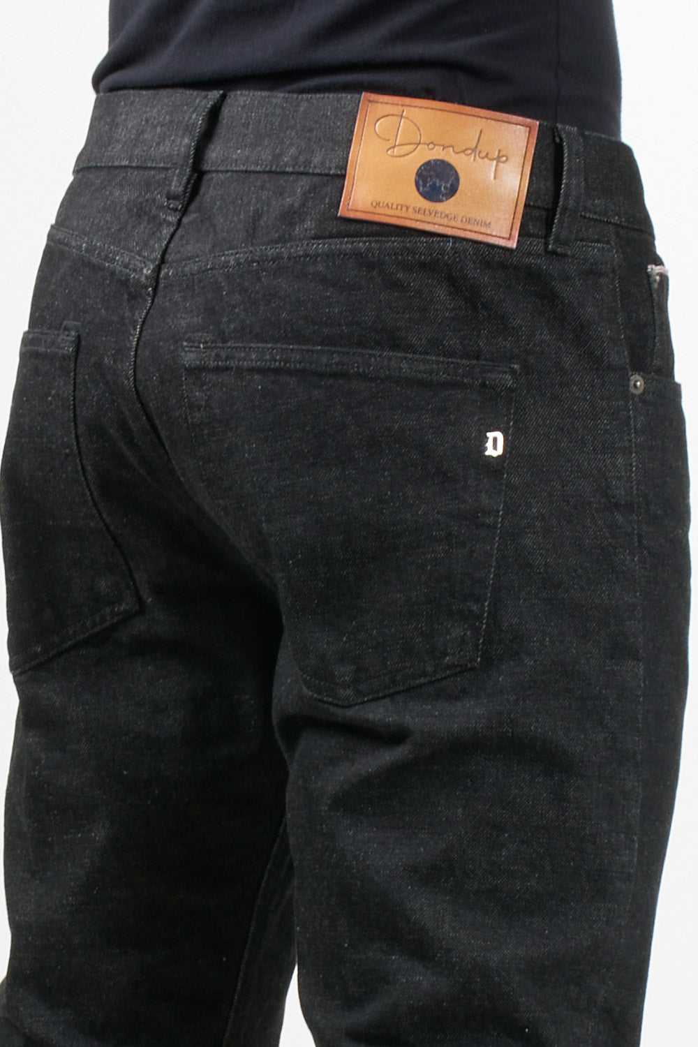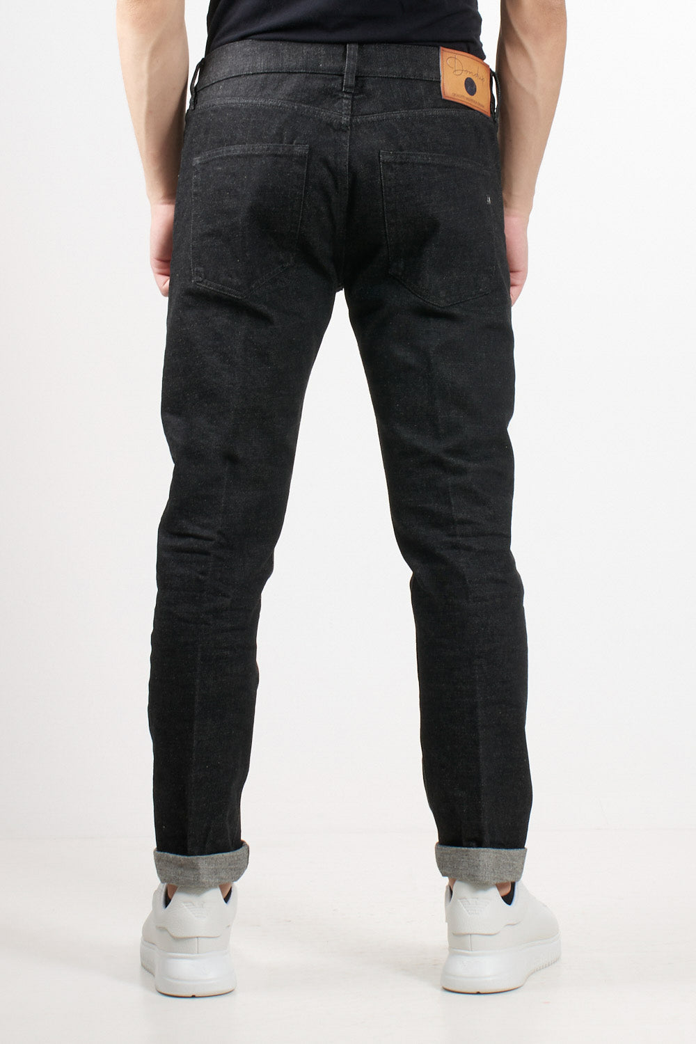 Five-pocket black denim jeans with a clean construction and a slim fit. Detailed with a leather logo patch and a micro "D" logo on the back.