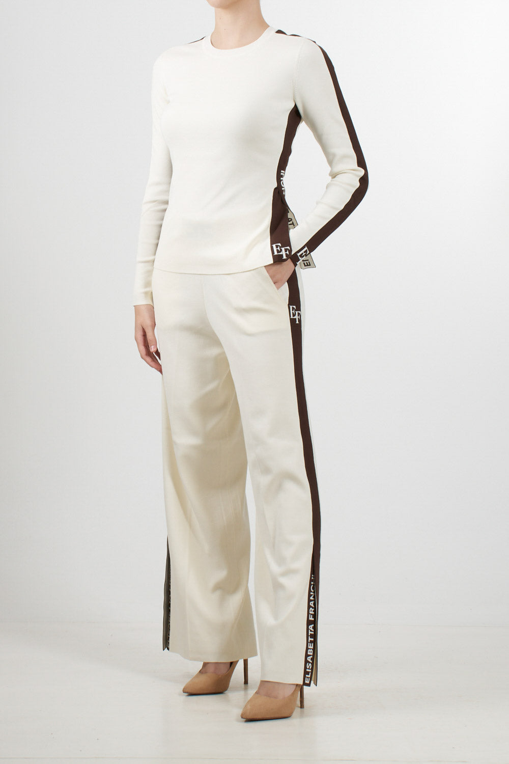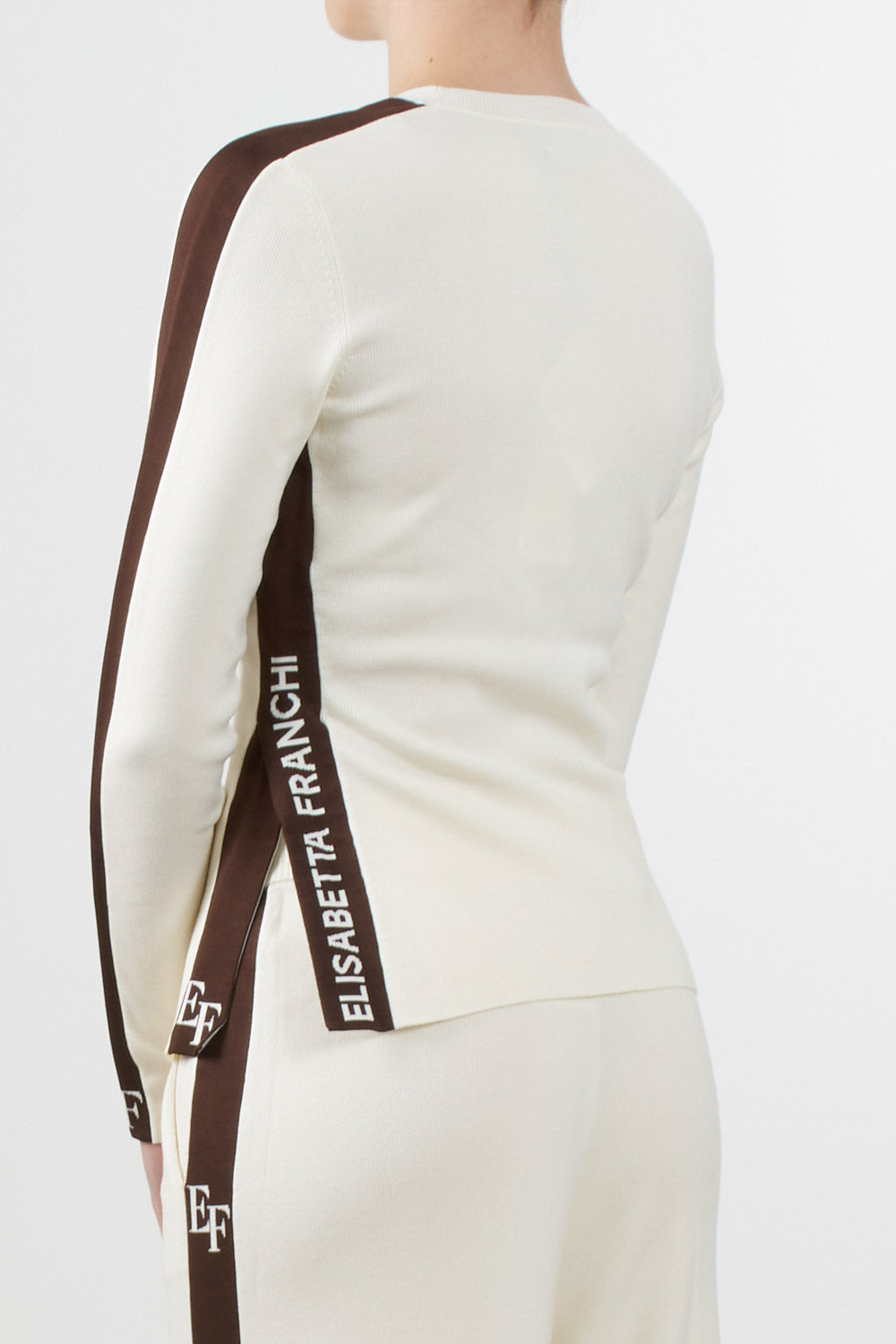 Viscose Sweater with Shiny Bands and Inlaid Logos – Elisabetta Franchi