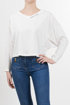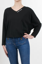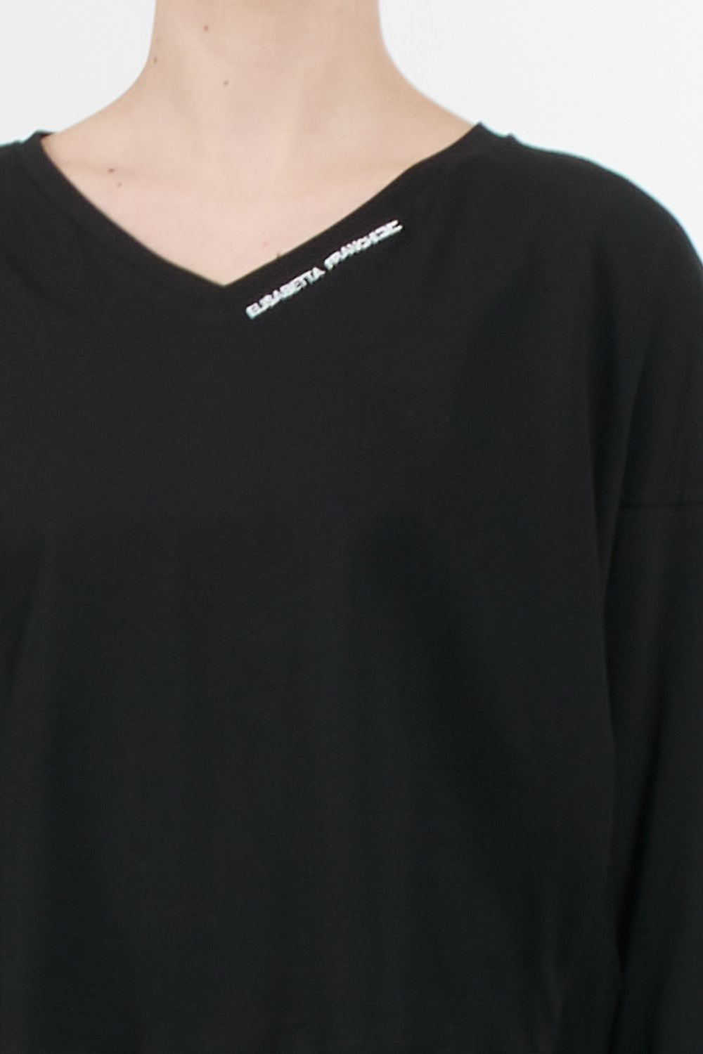 Oversized sweater by Elisabetta Franchi with long sleeves, contrasting lettering logo on the front, V-neck