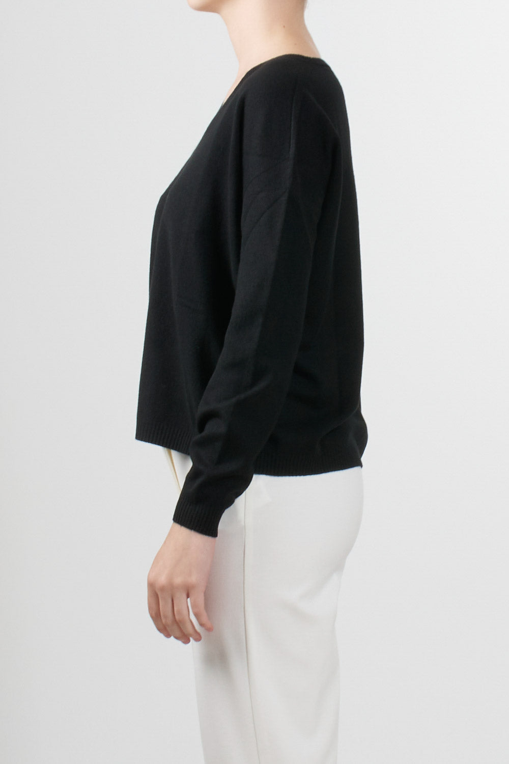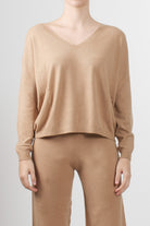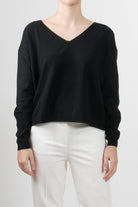 V-neck sweater in a viscose blend with a relaxed fit. The simple design and flowing texture make it a versatile and comfortable piece, ideal for creating casual or more refined looks depending on your outfit.
