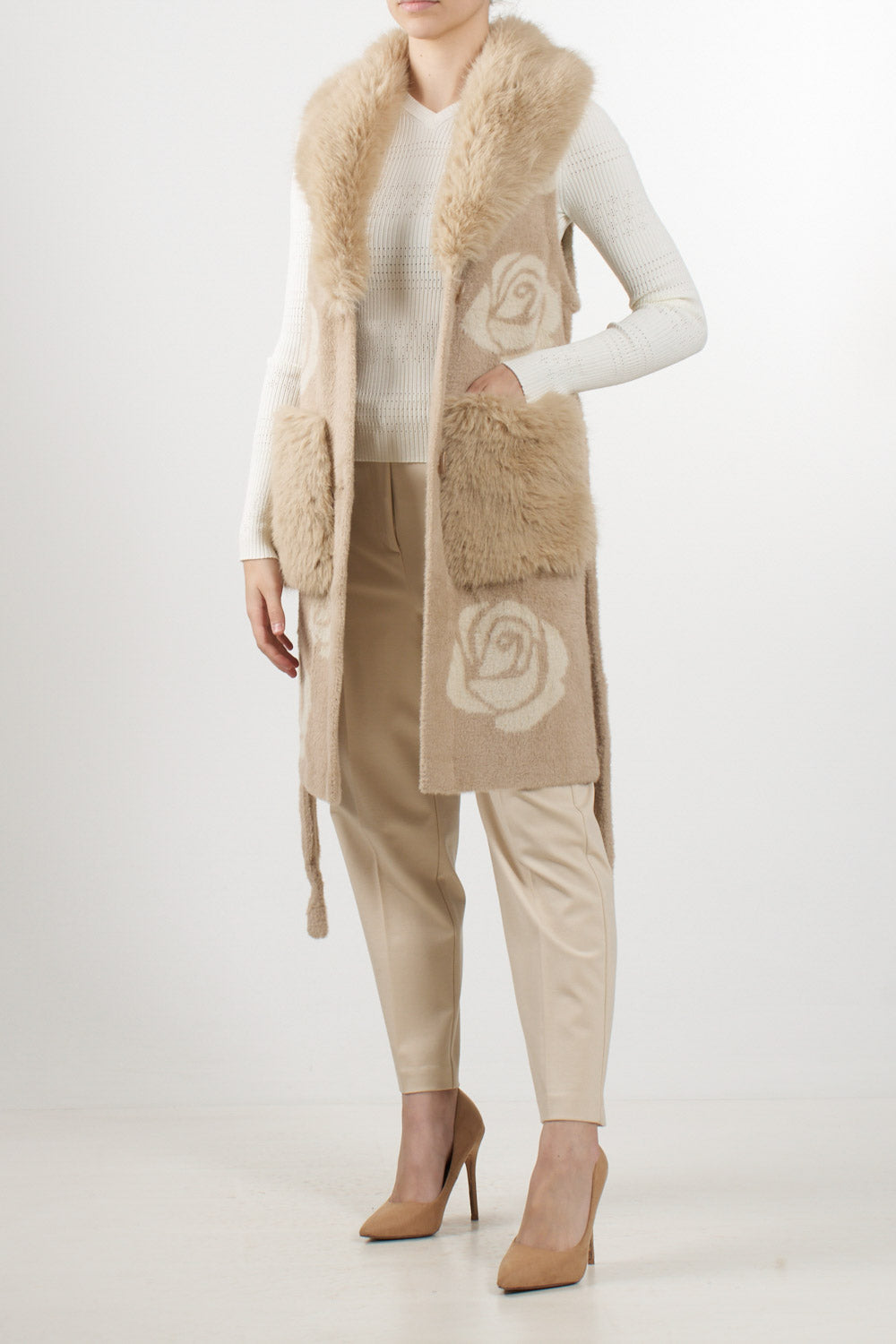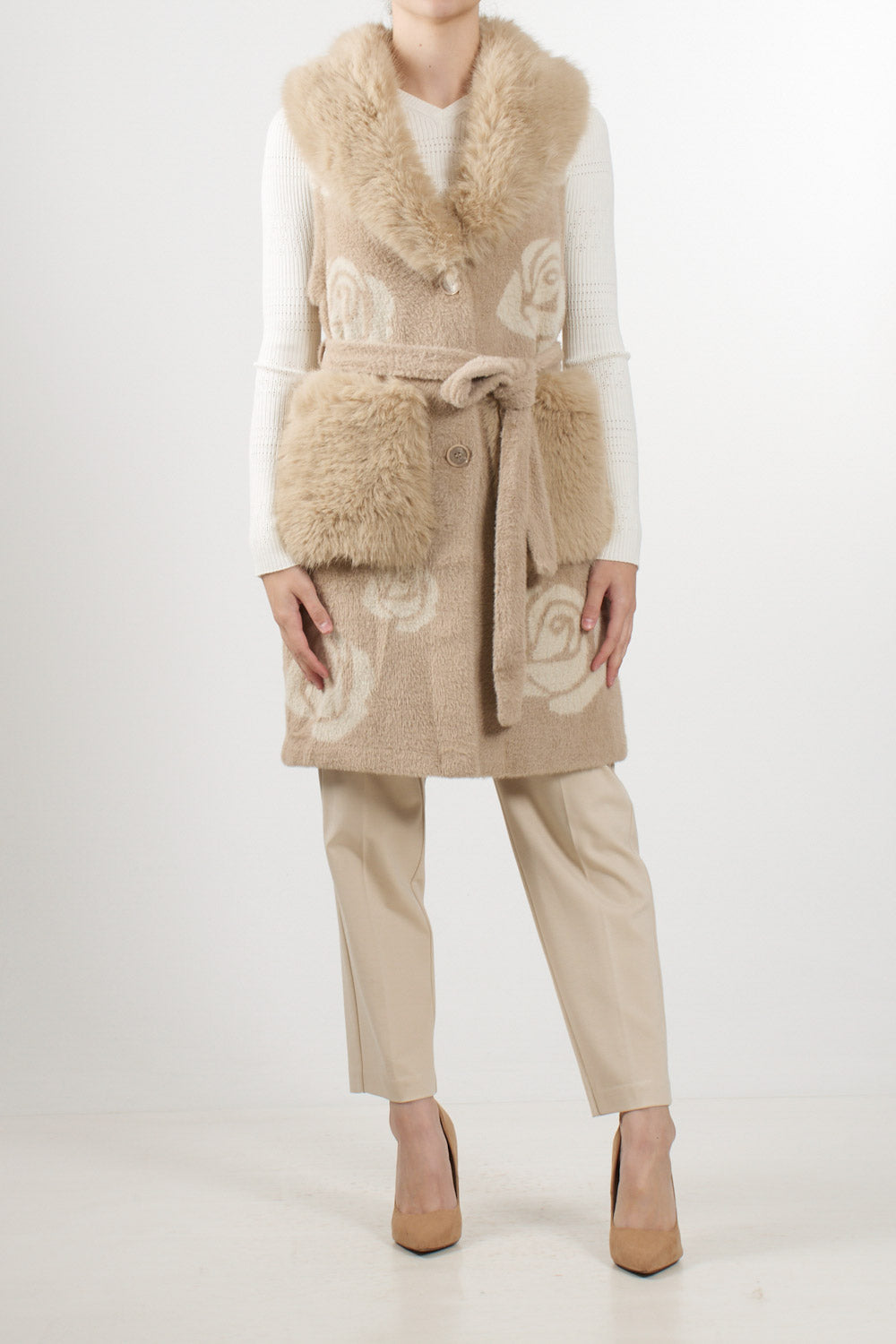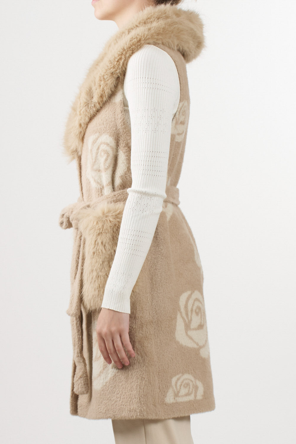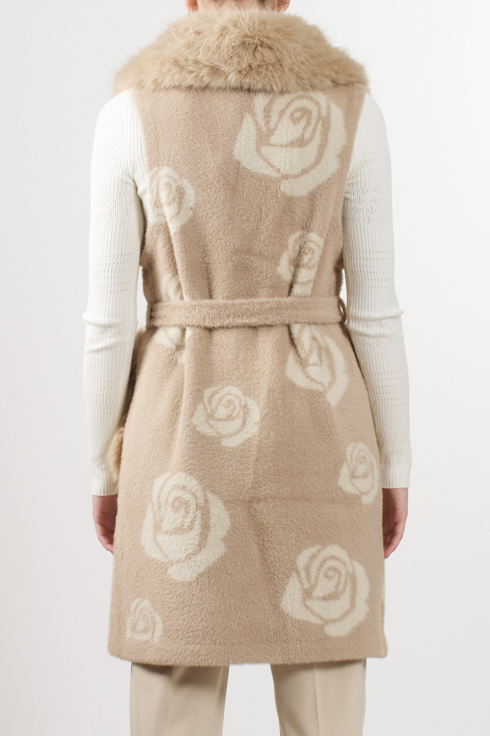 Faux fur vest with roses