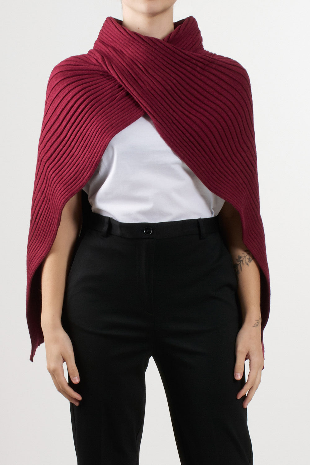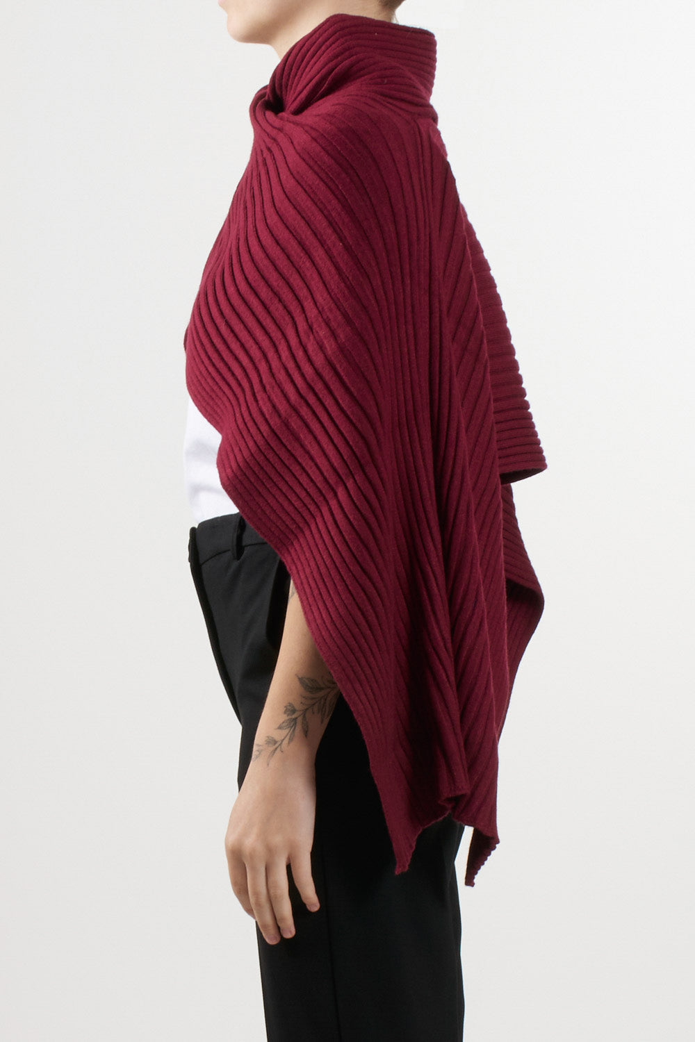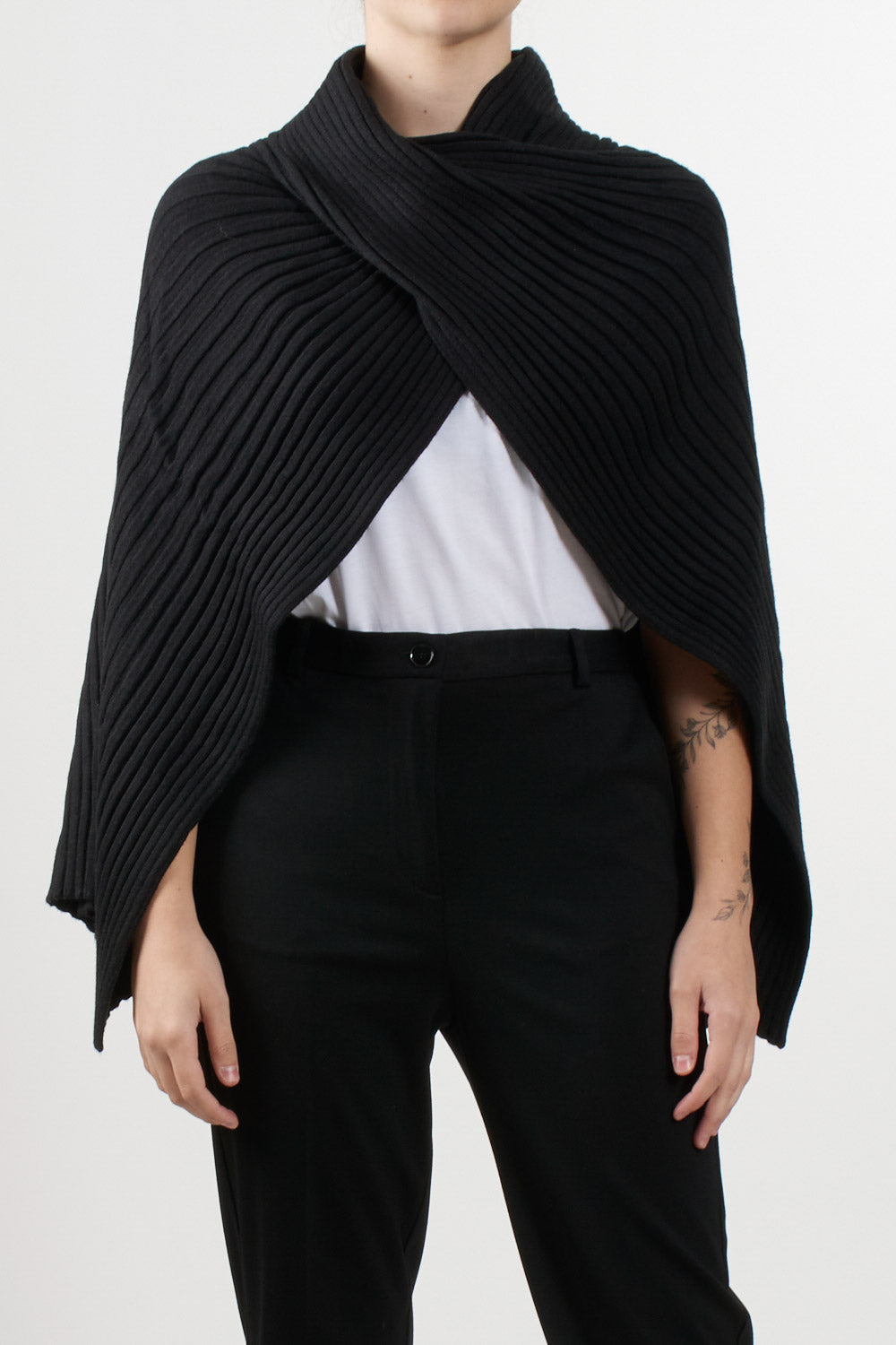 Knitted and ribbed poncho