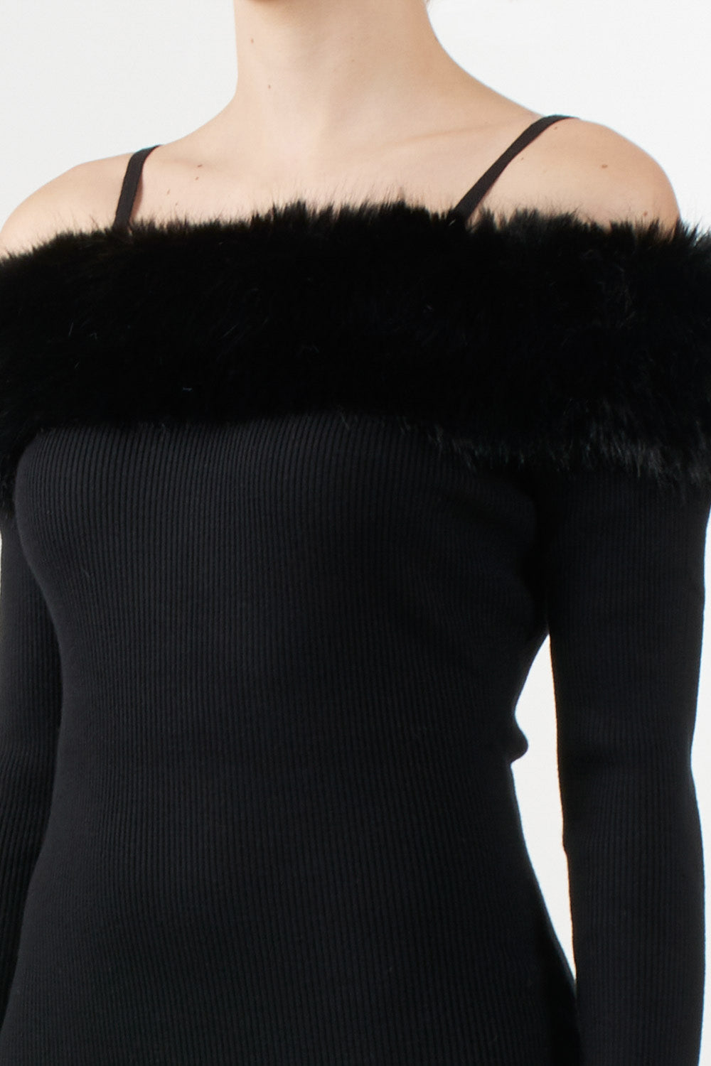 Fur collar sweater dress