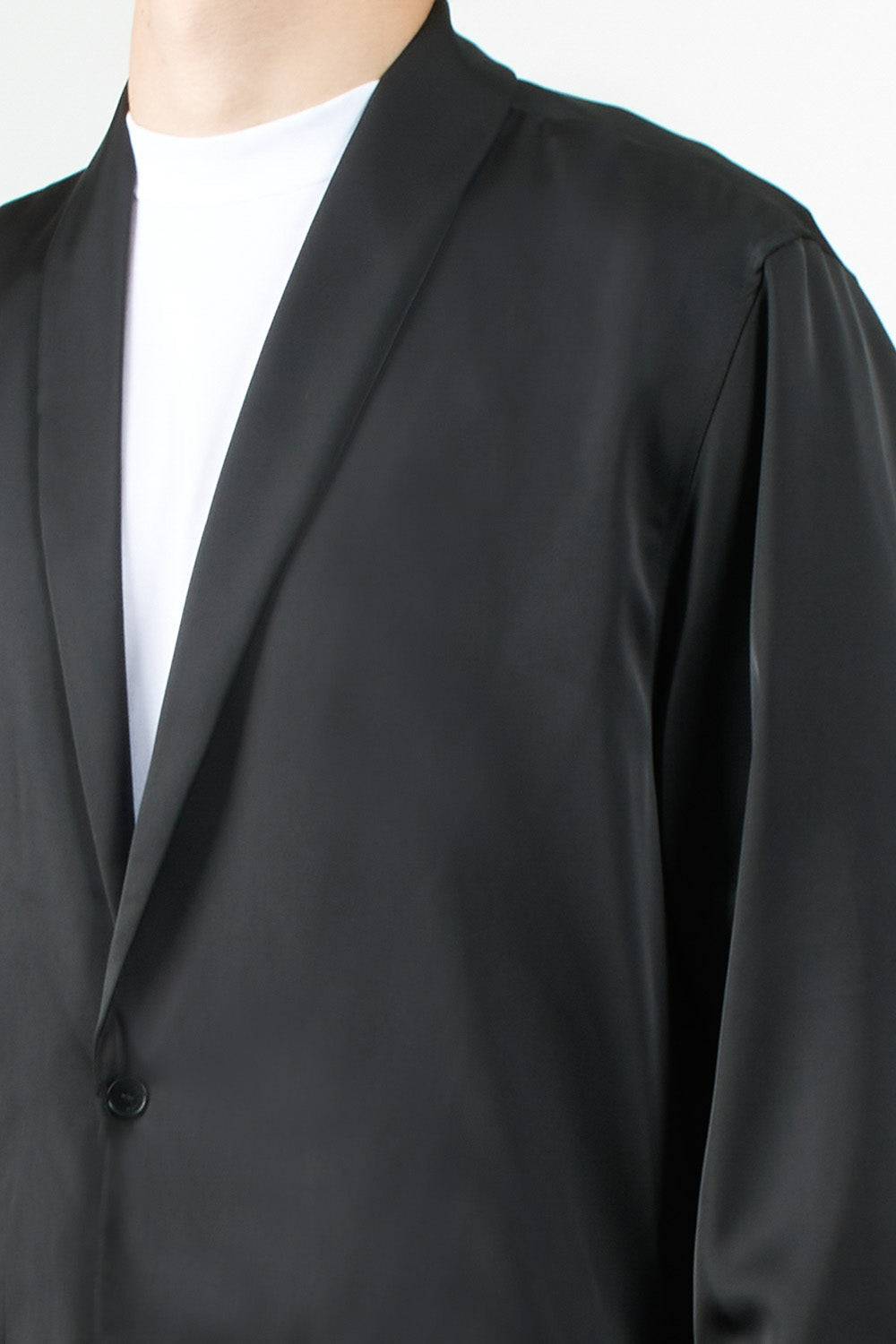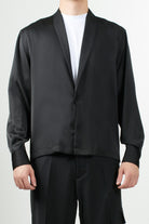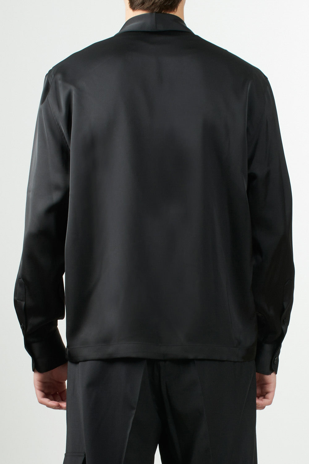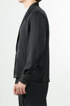 I'M BRIAN shirt with a clean cut, shawl collar, and two-button front closure. Crafted from smooth fabric with a slightly shiny finish, it's a versatile piece ideal for an elegant yet contemporary style. Clean, minimalist details enhance the Made in Italy design.