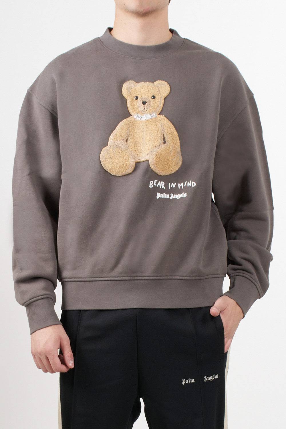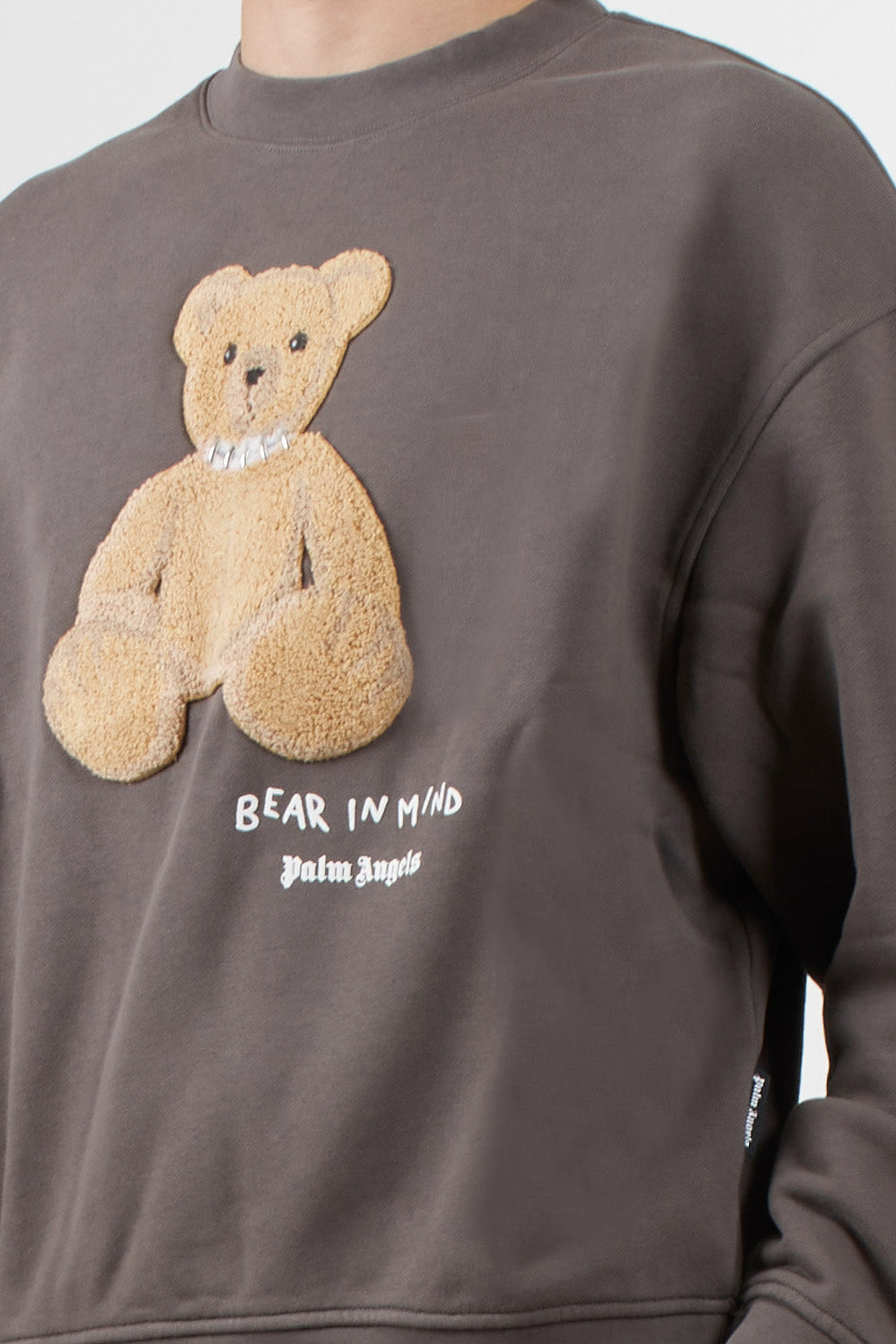 Palm Angels long-sleeved crewneck sweatshirt made of soft cotton. Featuring a teddy bear appliqué at the center chest with "Bear in Mind" writing. The oversized design and elasticated hem give a contemporary, relaxed feel to this iconic piece.