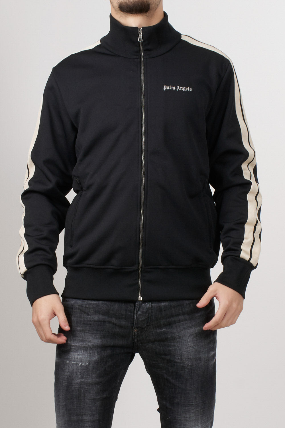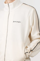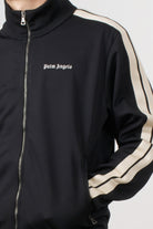 Palm Angels sweatshirt made of lightweight technical fabric, with a regular fit and iconic brand details. The model features a high neck, a full-length zip closure, side pockets, and contrasting bands along the sleeves. The Palm Angels logo is printed on the chest. A comfortable and contemporary piece, ideal for a casual-sporty look with a distinctive character.