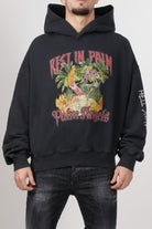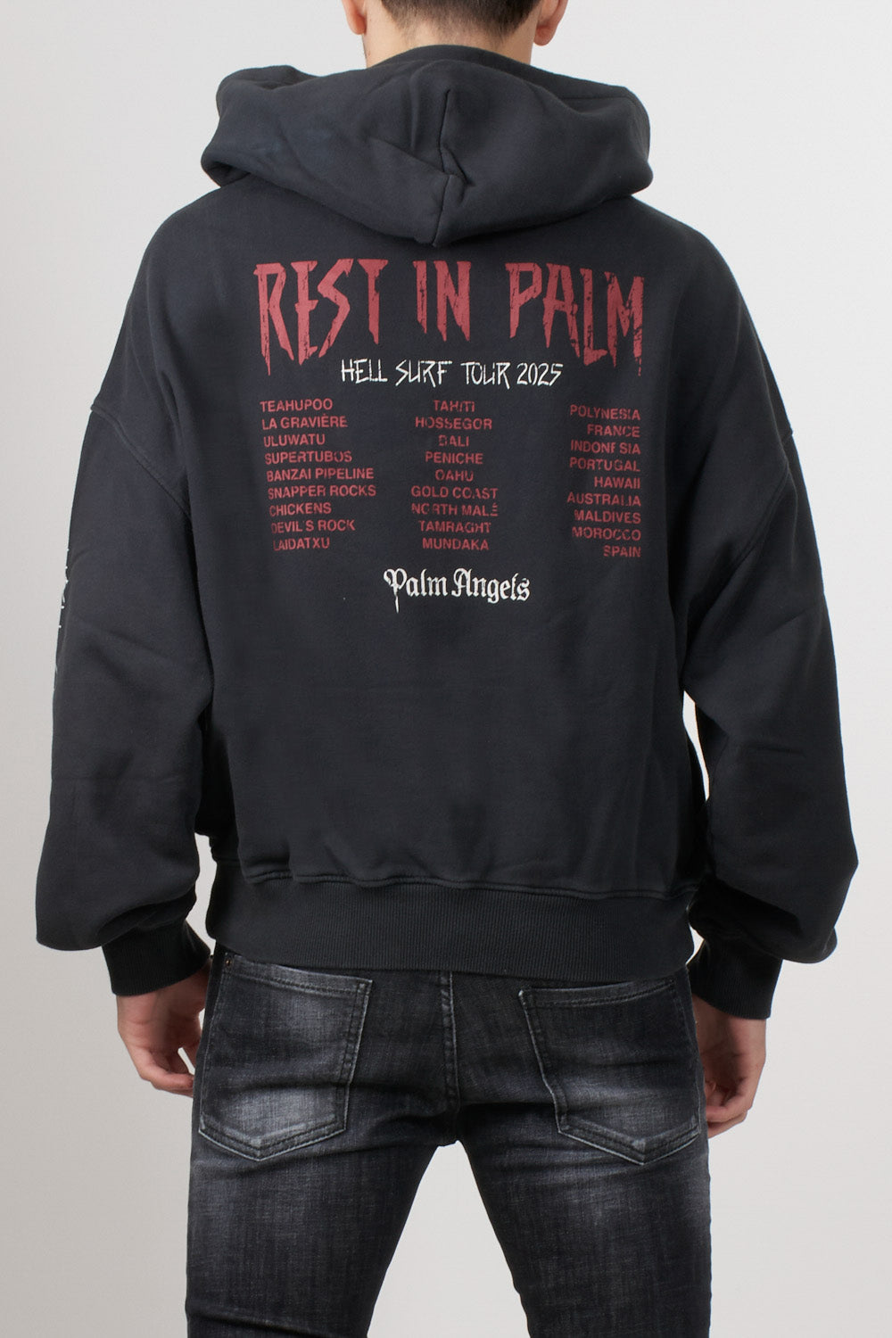 Palm Angels cotton sweatshirt with a loose fit and distinctive graphic details on the front and back. The model features an oversized drawstring hood, long sleeves, and ribbed cuffs and hem. An iconic piece of Palm Angels streetwear.