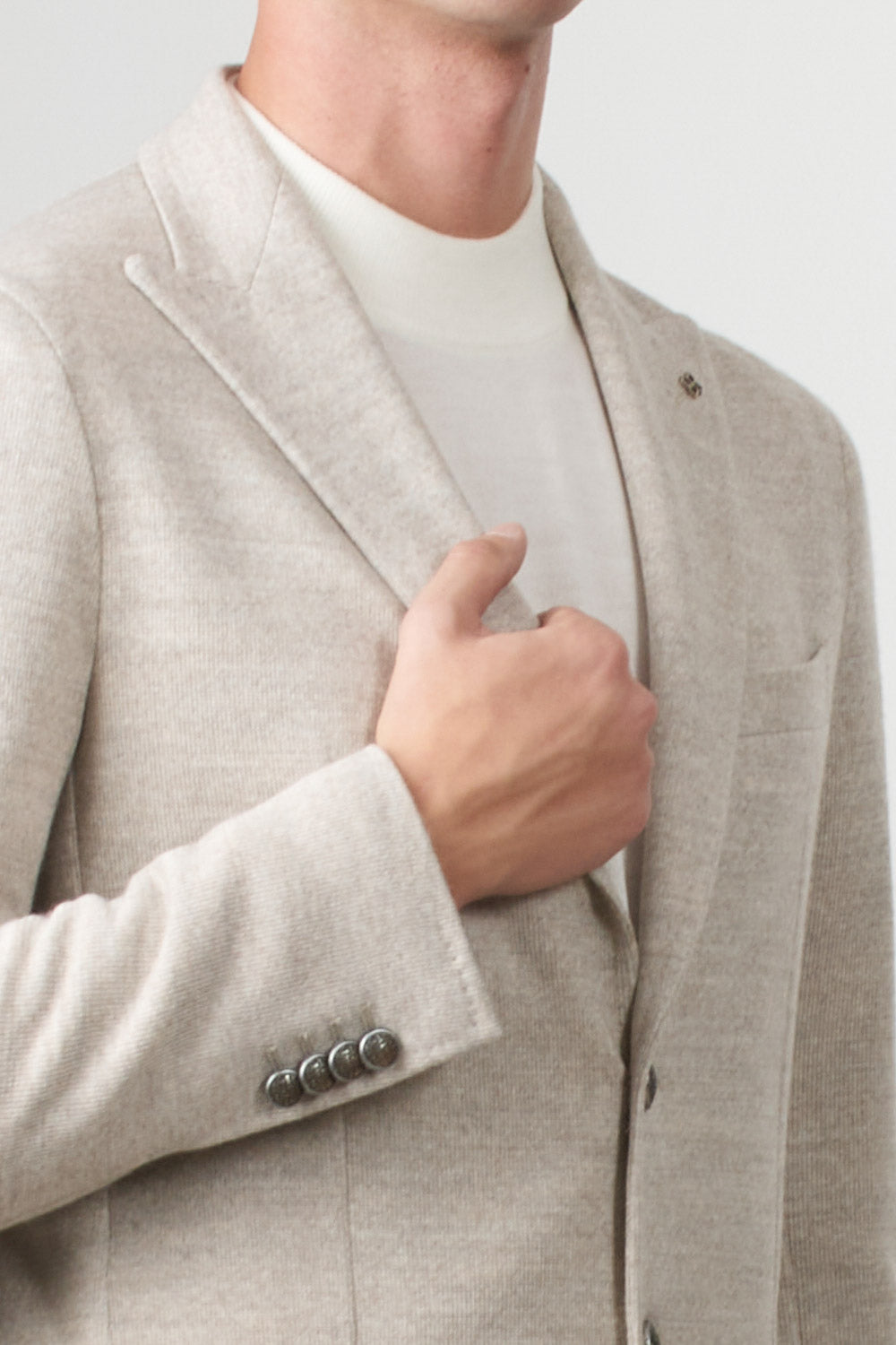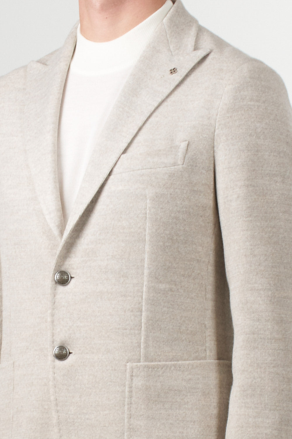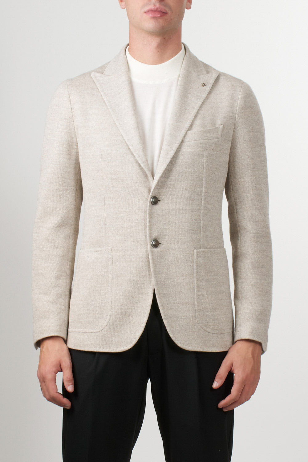 Giacca monopetto di Tagliatore a due bottoni ,rever classico con micrologo in metallo, taschino sul petto e tasche applicate. Il taglio moderno e il tessuto morbido conferiscono una vestibilità naturale e un look elegante, perfetto per outfit formali o casual raffinati.