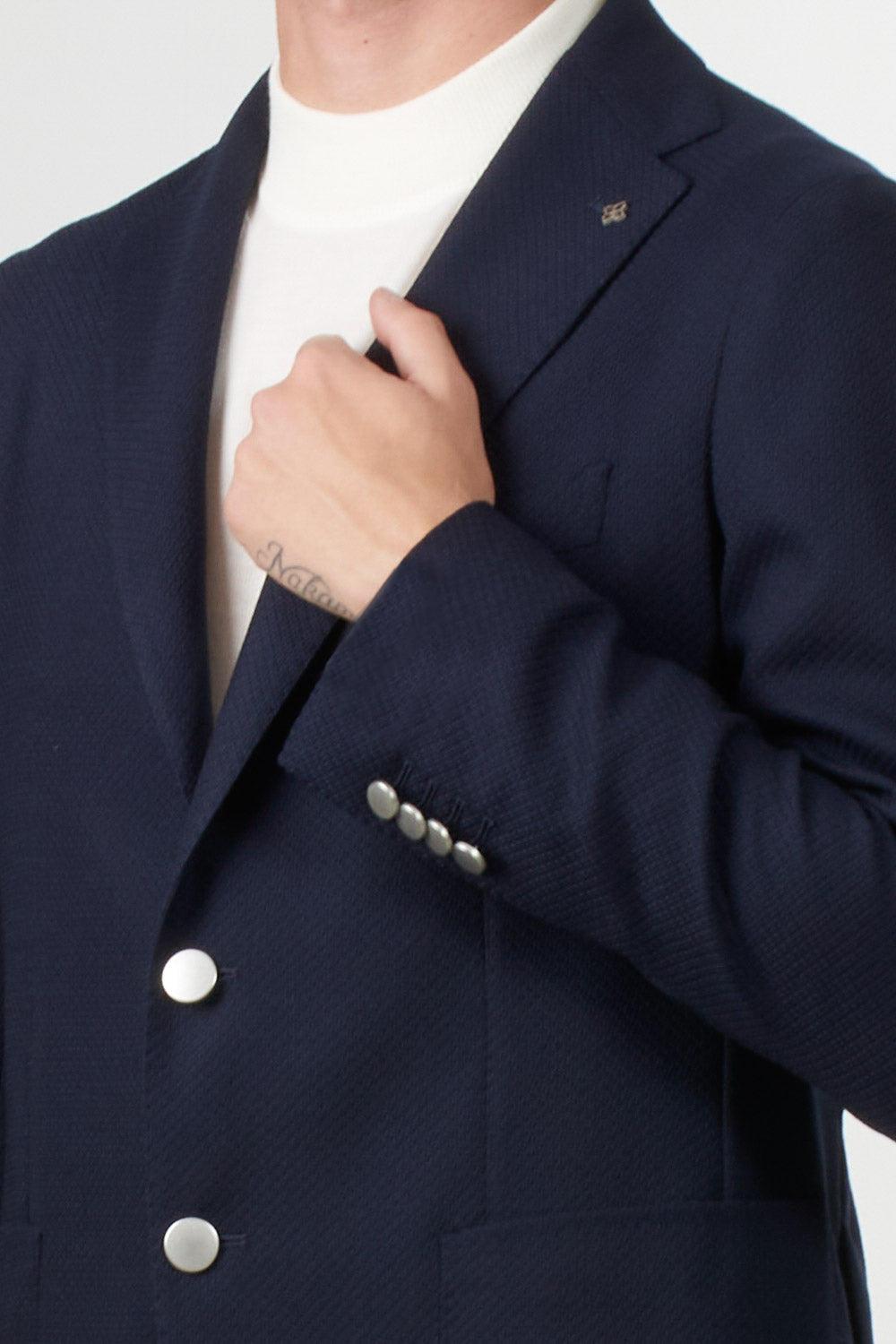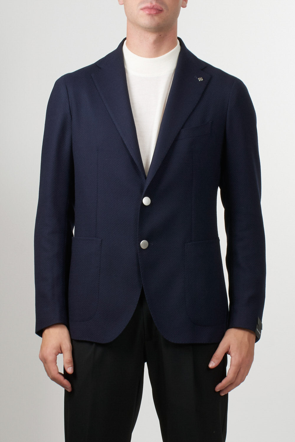 Giacca monopetto di Tagliatore a due bottoni realizzata in lana con lavorazione microstrutturata. Presenta rever classico con micrologo in metallo, taschino sul petto e tasche applicate. Il design essenziale e la texture del tessuto donano un’eleganza moderna e versatile, ideale per look formali o smart casual.