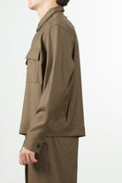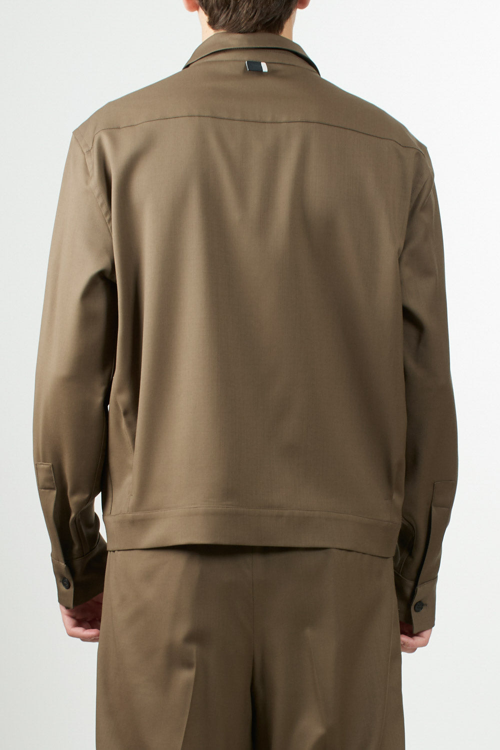 A minimalist, contemporary jacket crafted from pure virgin wool. It features two patch pockets with flaps on the chest, a front button closure, and a slightly boxy fit. A versatile piece, perfect as a shirt or a lightweight jacket, ideal when paired with the matching LIPFW25266930 trousers.