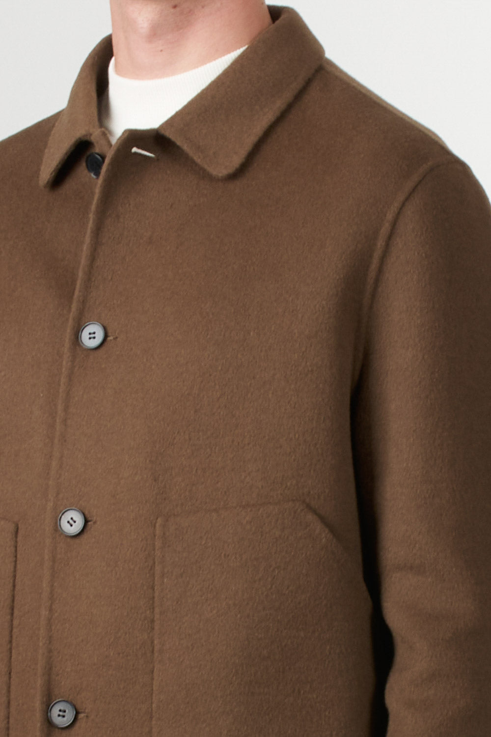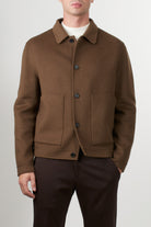 This Low Brand shirt jacket features a front button closure, a classic collar, and two large patch pockets. Its simple design and structured cut make it ideal for completing casual or formal looks with a refined touch.