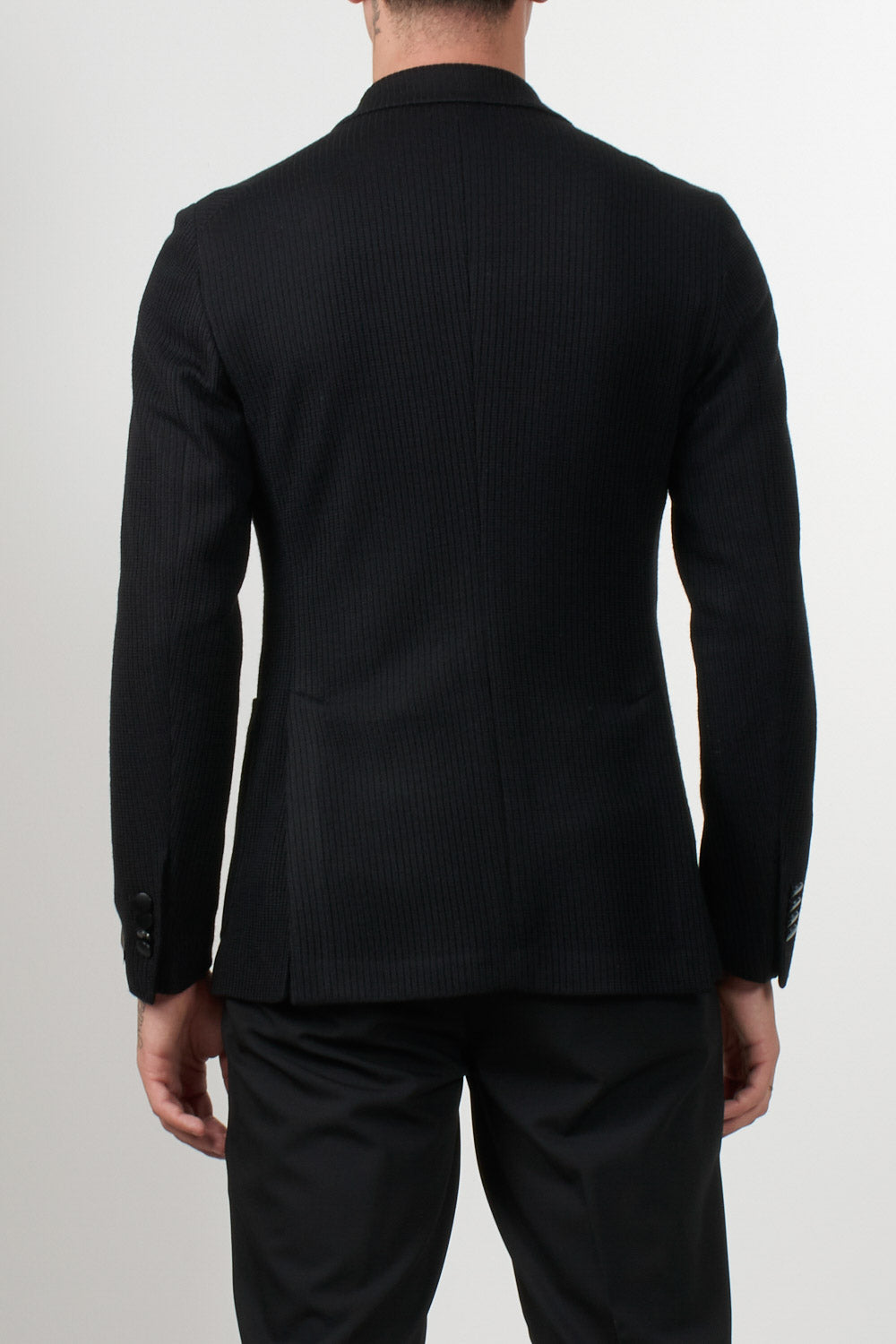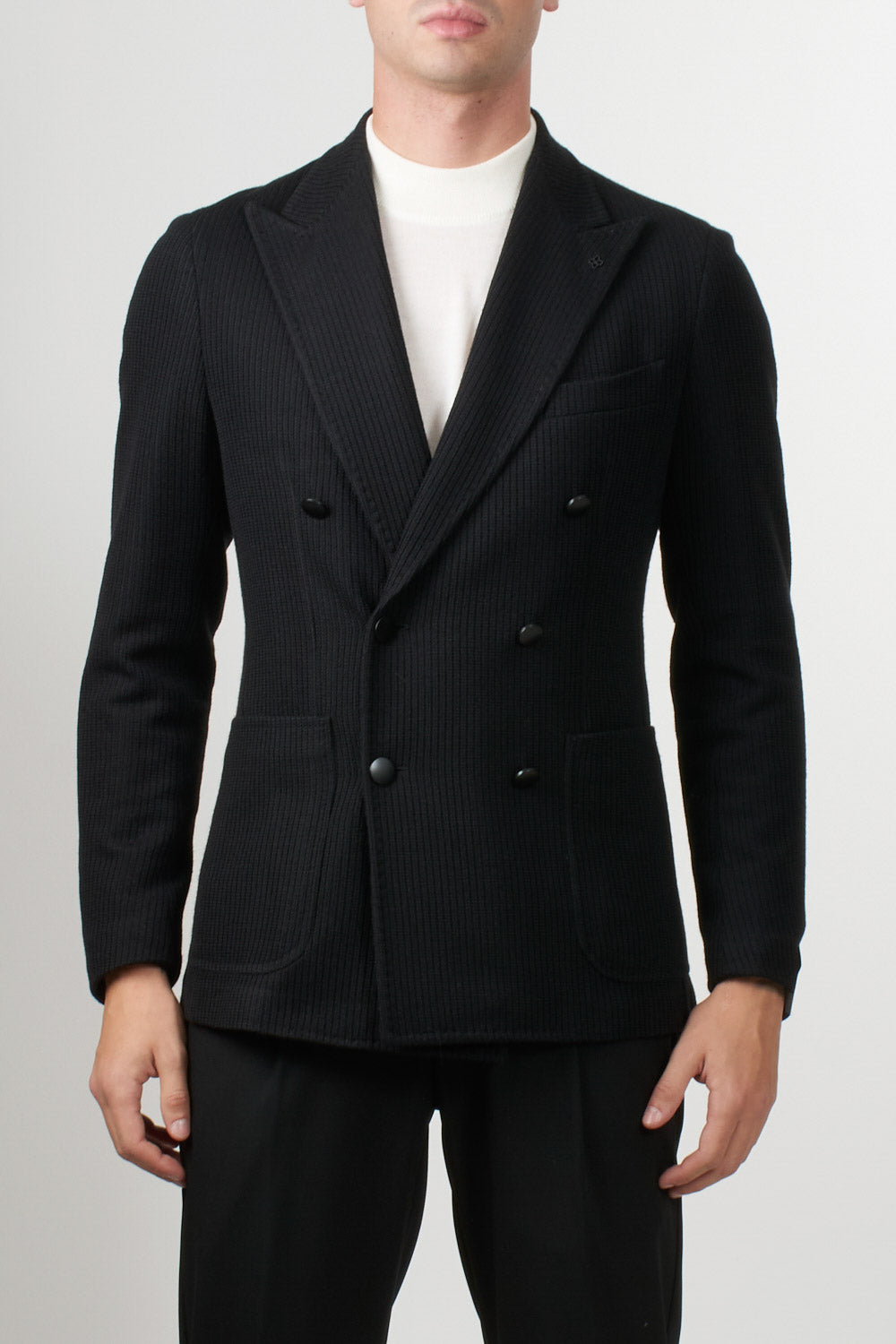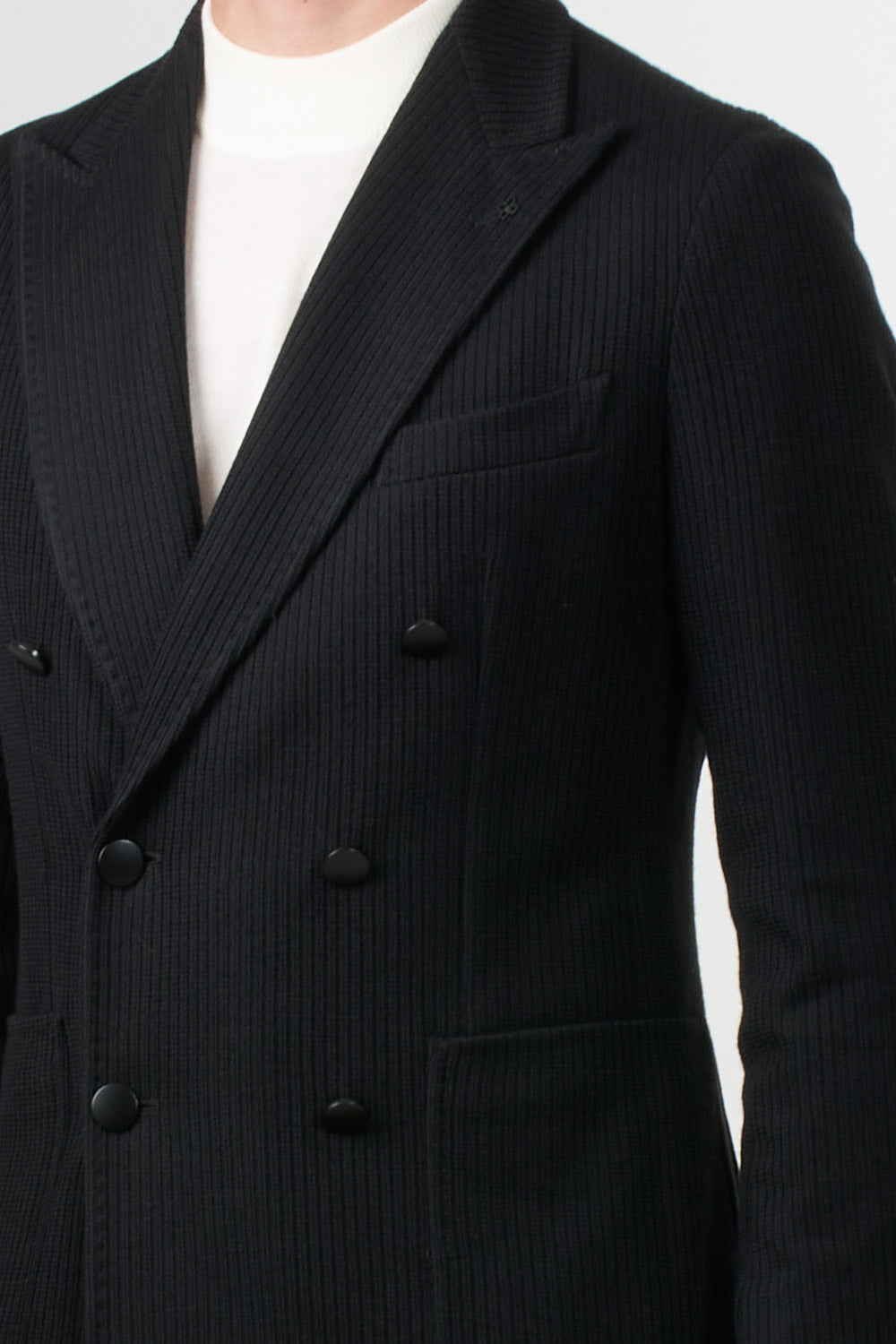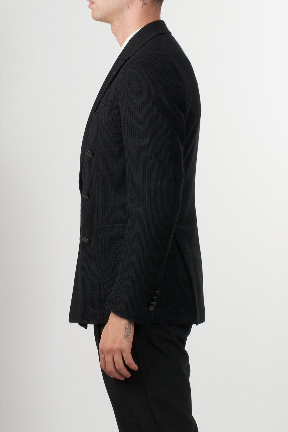 This double-breasted, six-button jacket in ribbed knit features peak lapels with a micrologo on the chest, a breast pocket, and patch pockets. It's perfect for refined looks with a contemporary twist.