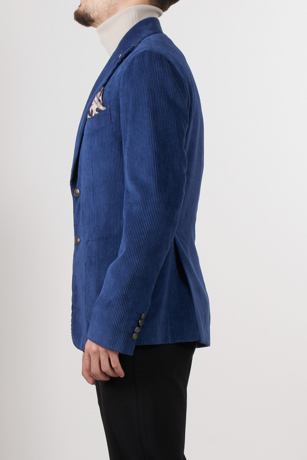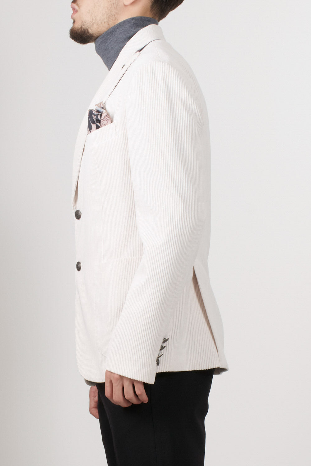 Single-breasted, two-button jacket crafted from fine corduroy, featuring a soft, unstructured construction for natural comfort and relaxed elegance. It features notched lapels, patch pockets, and a chest pocket with a matching handkerchief. Ideal for casual chic or business casual, it's perfect for the fall season.