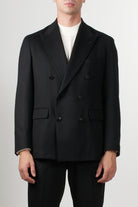 Tagliatore double-breasted jacket with peak lapels and six-button closure. The tailored design and semi-soft construction ensure an elegant and contemporary fit. Flap pockets, a chest pocket, and a back vent complete the brand's distinctive style. Ideal for formal or business casual looks.