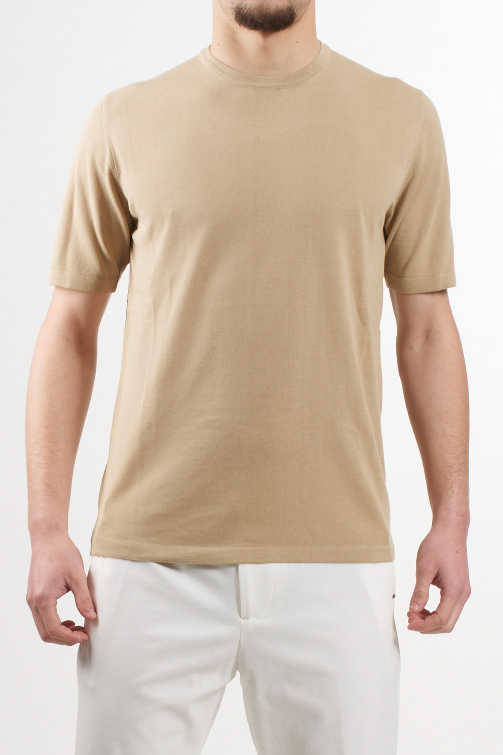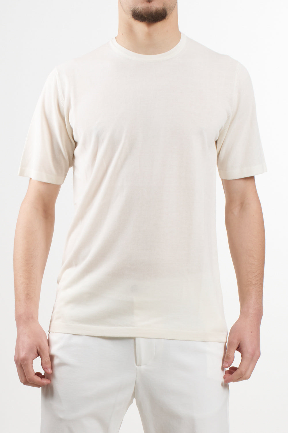 This refined Roberto Collina crewneck is made in Italy from 100% cotton. With a clean short-sleeve design and tubular hem, it offers timeless elegance and breathability, perfect for warm-season styling.