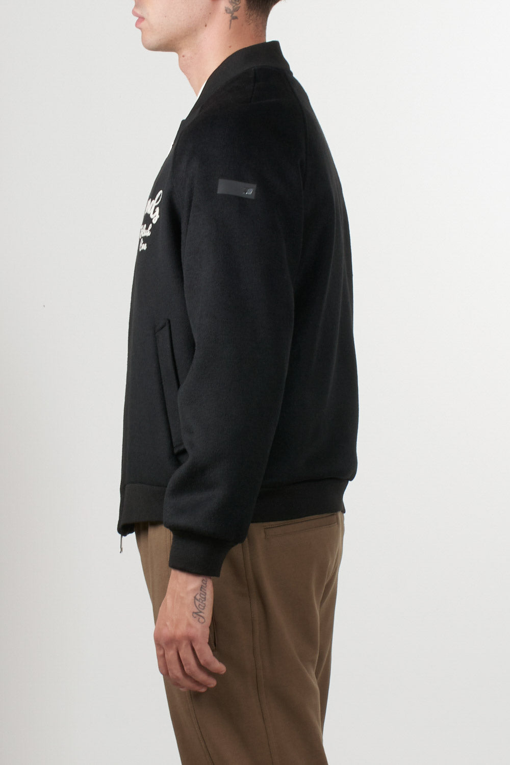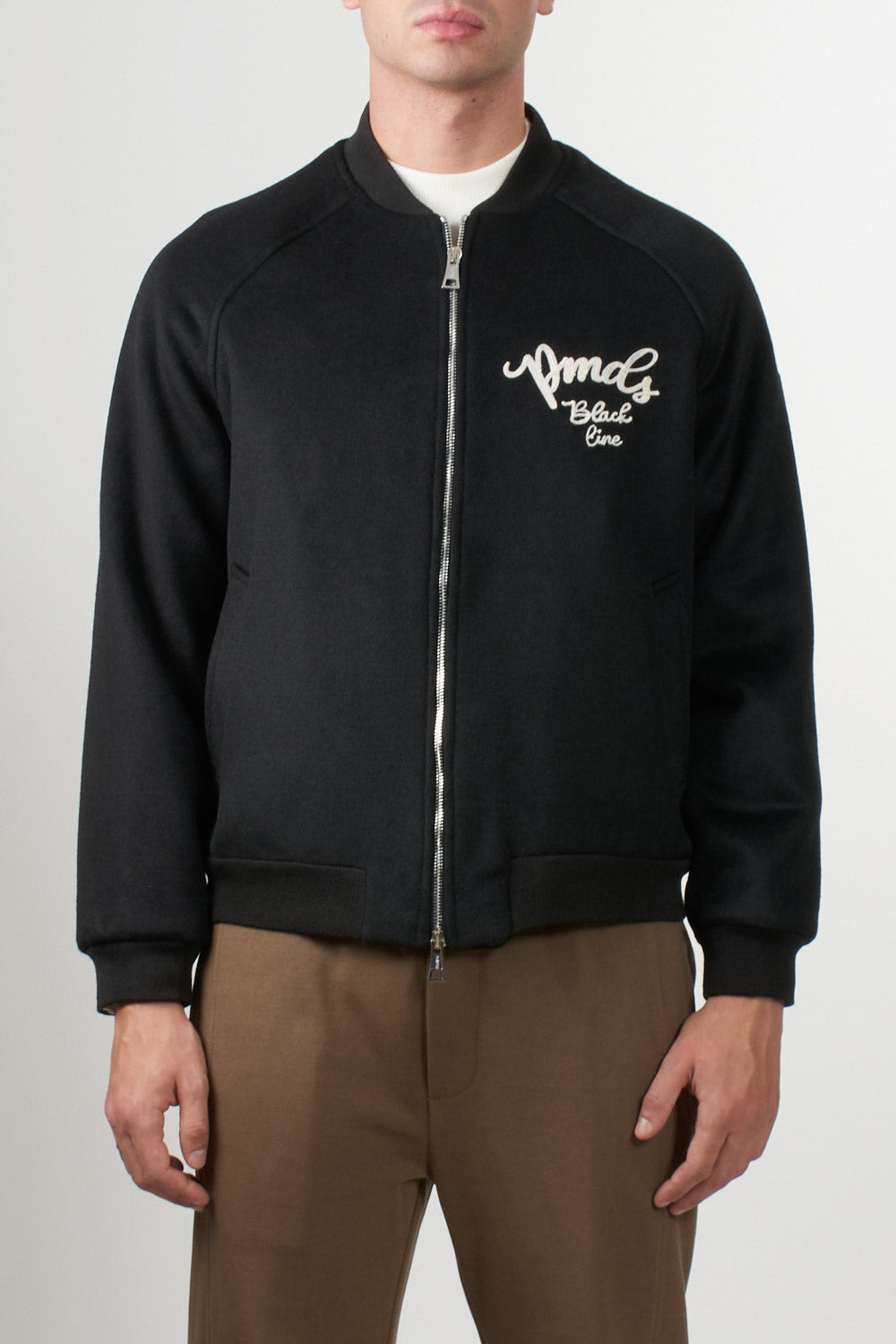 Zip-front jacket with "PMDS Black Line" embroidery on the chest. The style features a ribbed collar, cuffs, and hem, raglan sleeves, and inset side pockets. A sporty yet elegant piece, perfect for a contemporary, urban look.