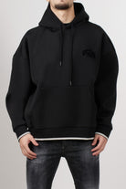 Men's regular-fit cotton sweatshirt with an adjustable hood and ribbed cuffs. The minimalist design is enhanced by the GCDS logo on the hood for a distinctive, contemporary touch. Ideal for casual, urban looks, paired with jeans or joggers.