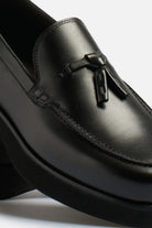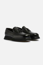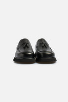 Handcrafted smooth leather moccasin by Morgillo, embellished with tone-on-tone tassels. Made with a rubber sole for added grip and comfort.