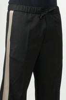 I'm Brian trousers, made in Italy, with a straight fit and a contrasting side band. They feature an elastic waistband with an adjustable drawstring, side pockets, and a relaxed fit that combines comfort and contemporary style. Ideal for casual-chic looks and sporty-elegant combinations.
