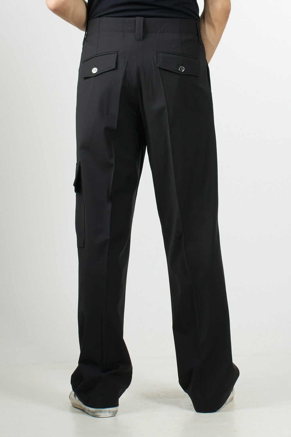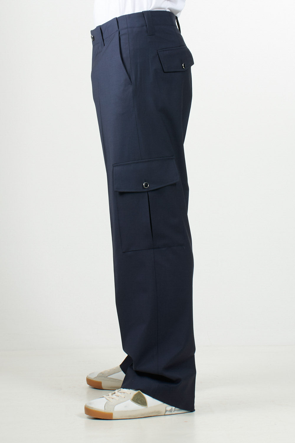 I'M BRIAN trousers with a contemporary style, a wide line and a fluid structure, are characterised by an applied side pocket that gives a functional and modern touch.