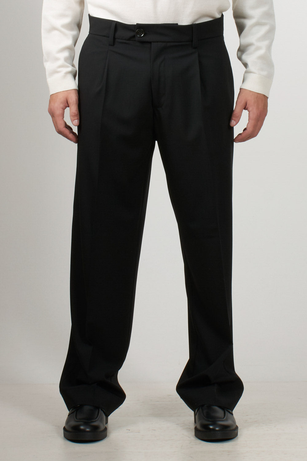 Wide-fit trousers made of jersey by Ungaro, featuring front pleats and a regular waist with belt loops. The style features slanted side pockets and a button closure. The flowing fabric and tailored construction ensure comfort and contemporary style.