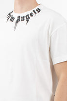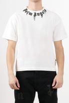 Palm Angels cotton T-shirt with iconic gothic logo embroidered on the crewneck. The oversized design lends a distinctive street-style look, perfect for contemporary urban outfits. Crafted from soft cotton jersey, it ensures comfort and style for any occasion.