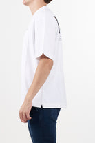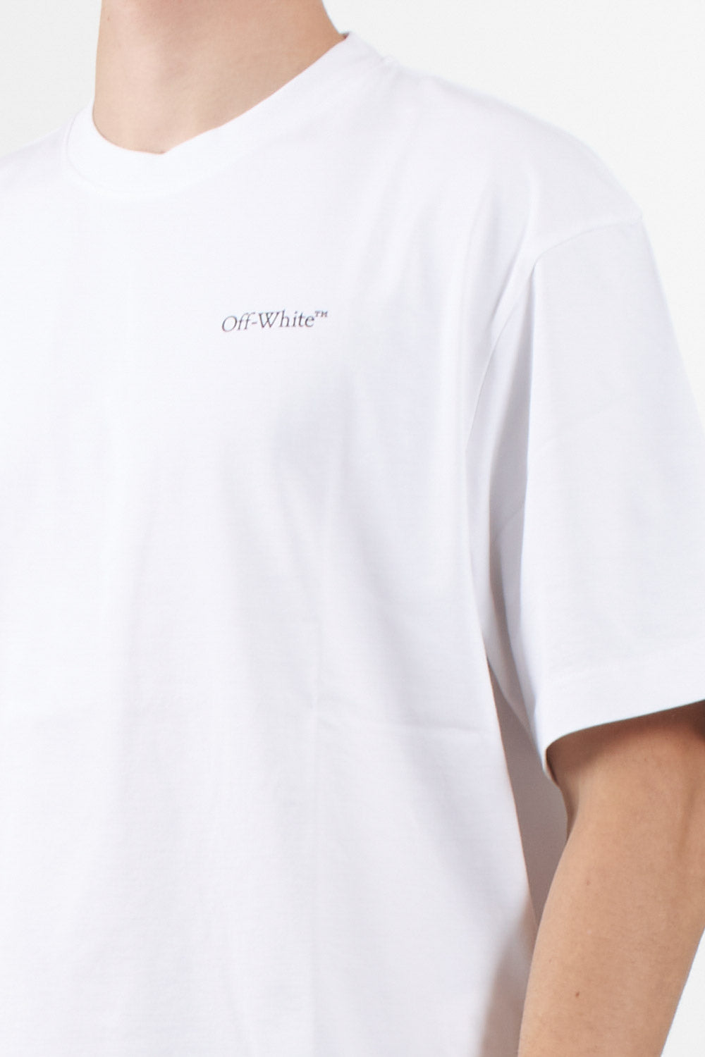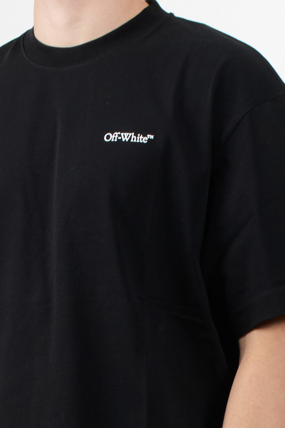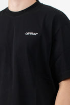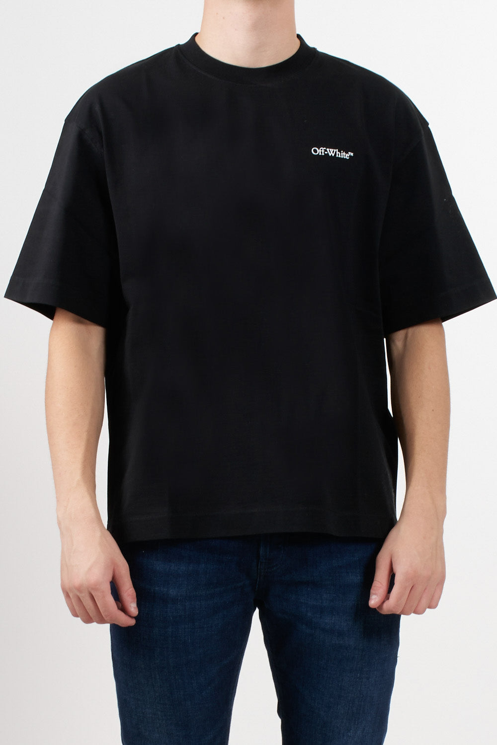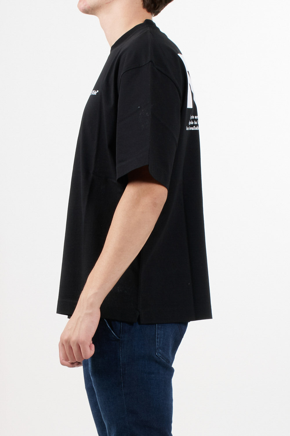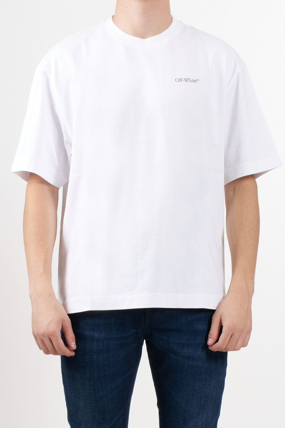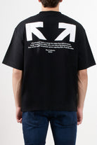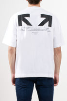 Off-White's short-sleeved T-shirt with a contemporary urban style. Made from soft cotton, it features an oversized silhouette with a ribbed crew neck. The minimalist logo is printed on the chest, while the back features the famous "Arrows" graphic with contrasting text, a distinctive detail from the brand's men's collections.