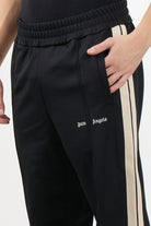 Retro-style track pants. The relaxed fit features an elastic waistband, contrasting side stripes, and an embroidered "Palm Angels" logo on the leg. Side zip cuffs create a contemporary urban look that's perfect even outside the gym. We recommend sizing up.