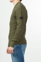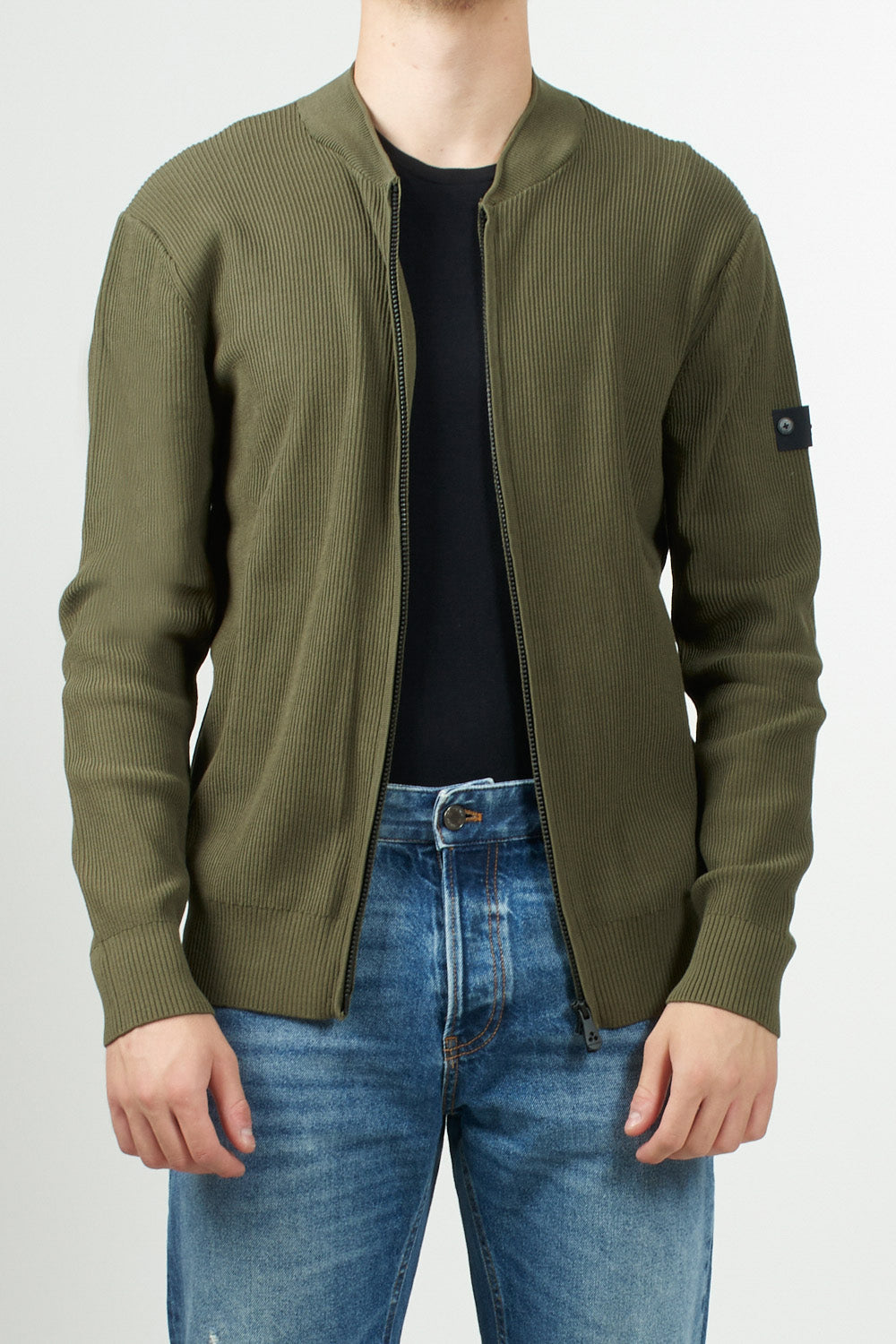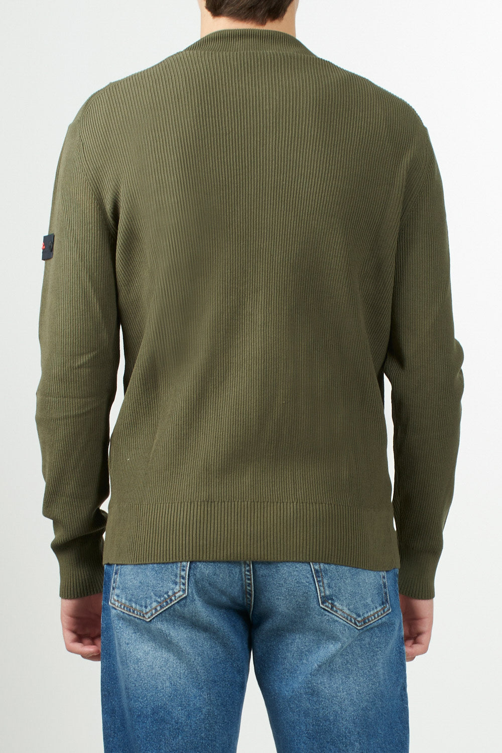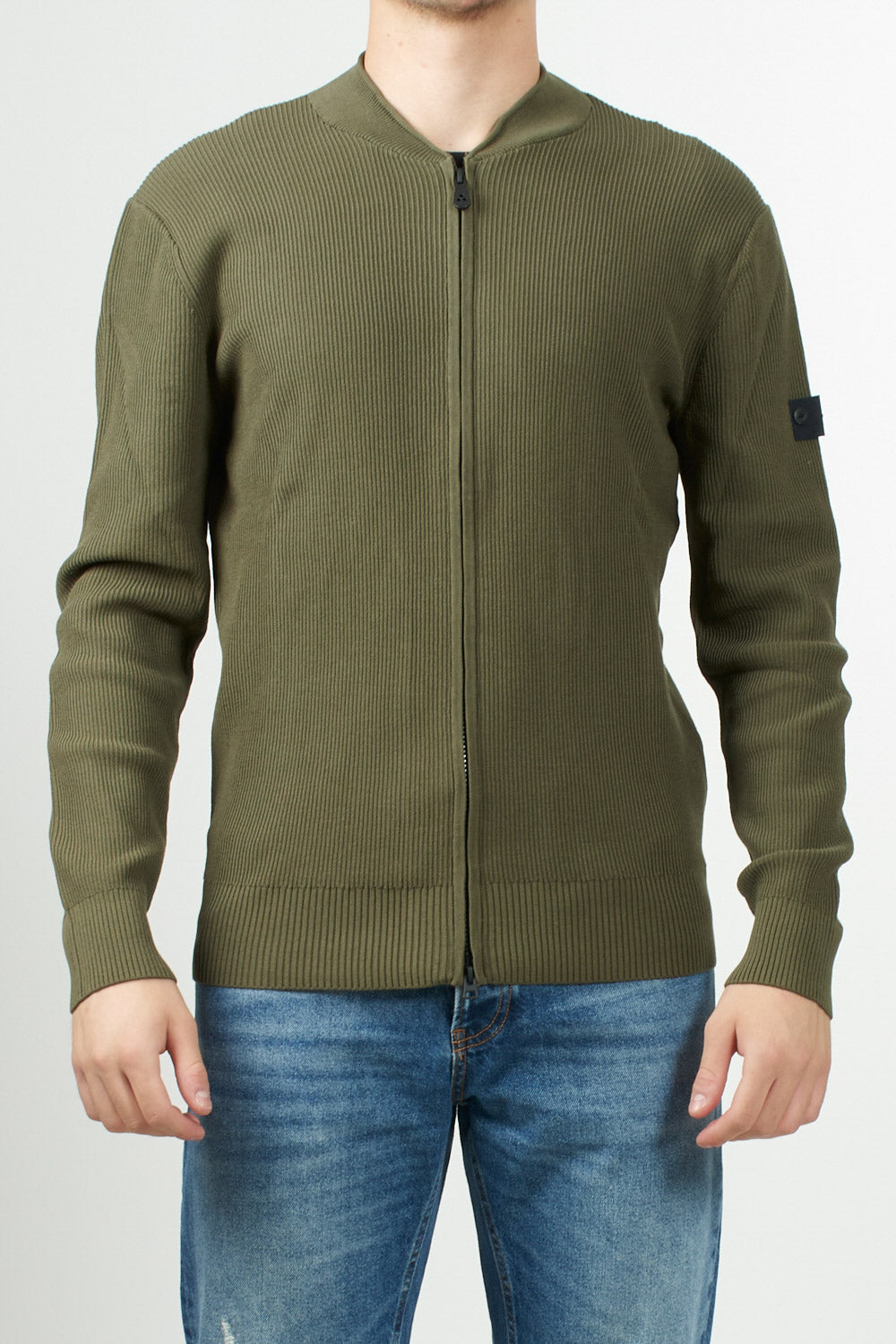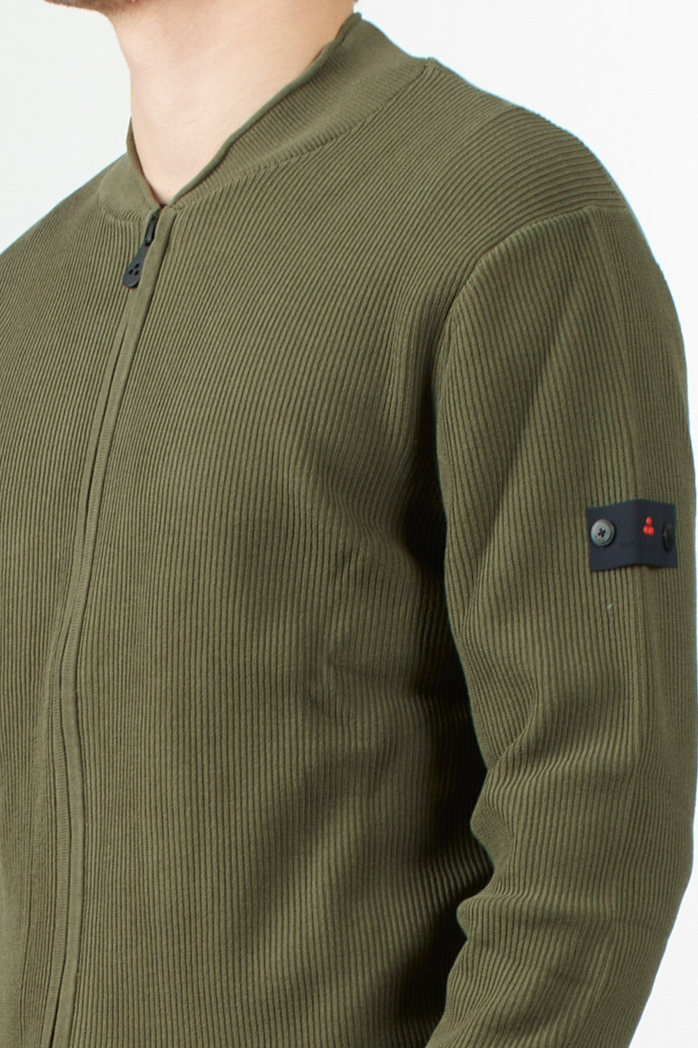 Cotton cardigan with a fisherman's rib knit, which lends a three-dimensional texture and a refined look. It features a stand-up collar, a two-way zip closure, and ribbed details on the collar, cuffs, and hem. The Peuterey Trilogy logo is applied to the left sleeve with two small buttons, for a discreet yet iconic touch. A versatile piece, perfect for contemporary urban looks.