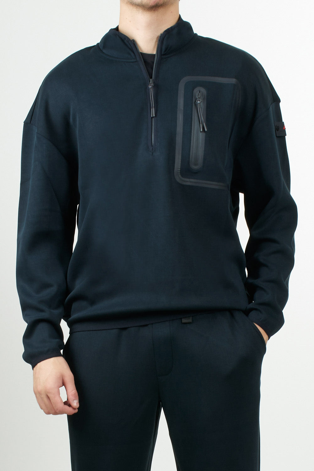 Sweatshirt made of technical scuba fabric, with a compact and stretchy feel, ensuring comfort and freedom of movement. The contemporary design features a stand-up collar with a half-zip closure and a chest pocket with rubberized piping. Peuterey logo applied with buttons on the left sleeve.