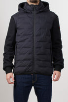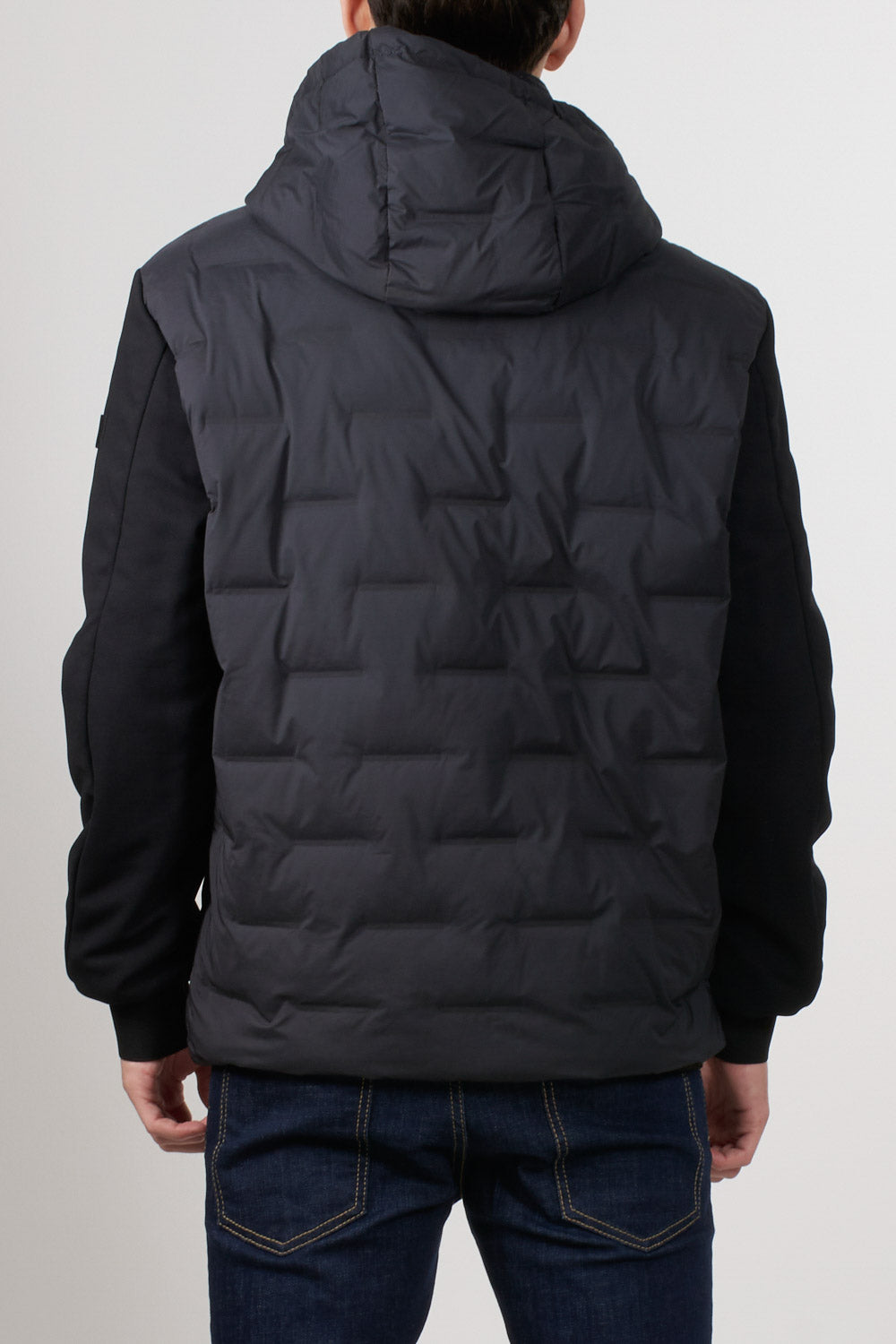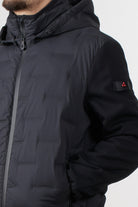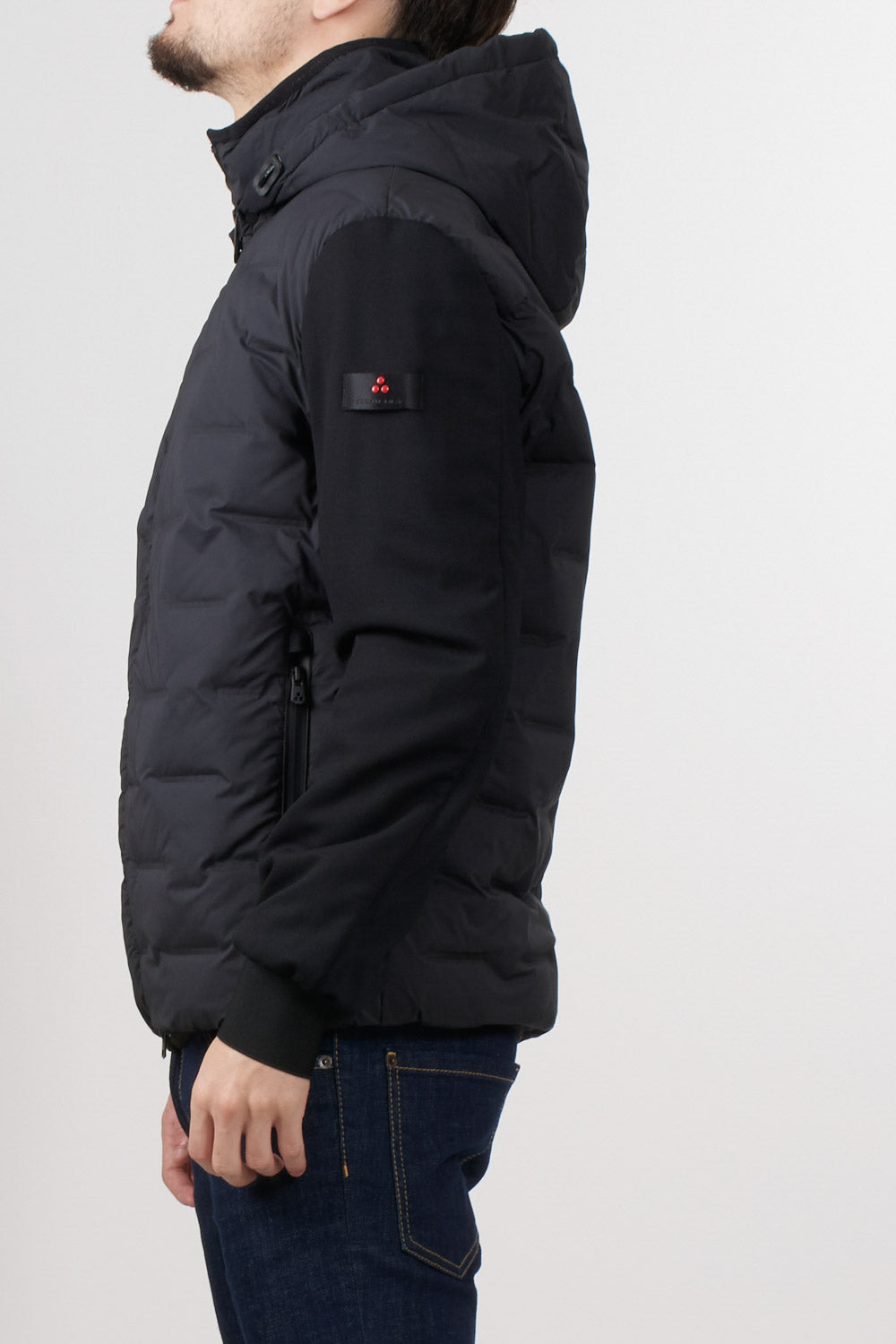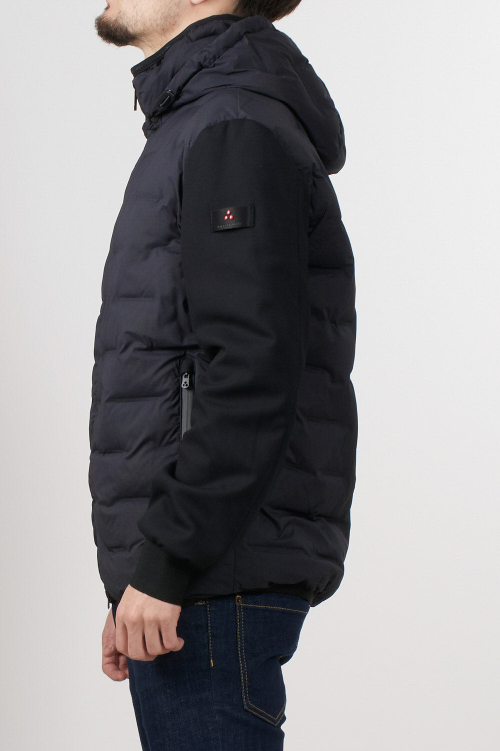 Holzer jacket made of a double material, with the main fabric in stretch polyester jacquard, and the second fabric is a technical stretch nylon drill with a brushed interior, which offers comfort and warmth. It features a two-way central zip, a high collar, windproof cuffs, and side pockets. GRS-certified ThermoPlume padding reproduces the softness and lightness of natural down, and is water-repellent.