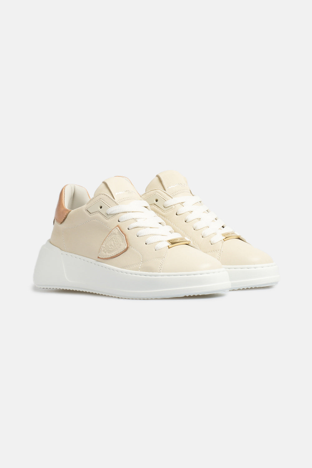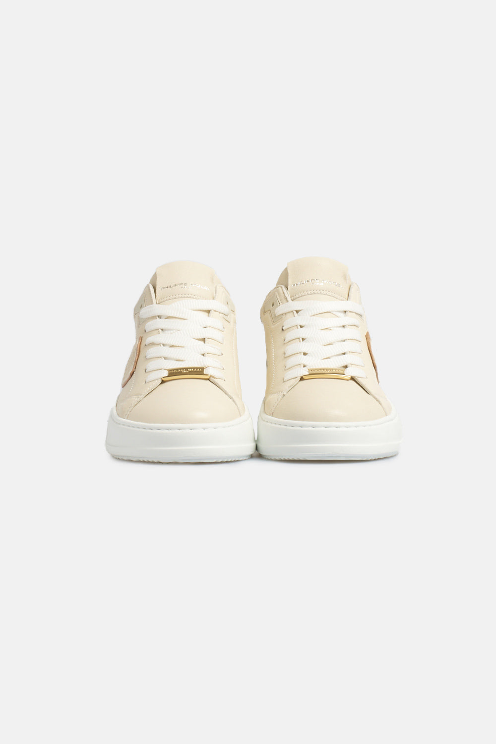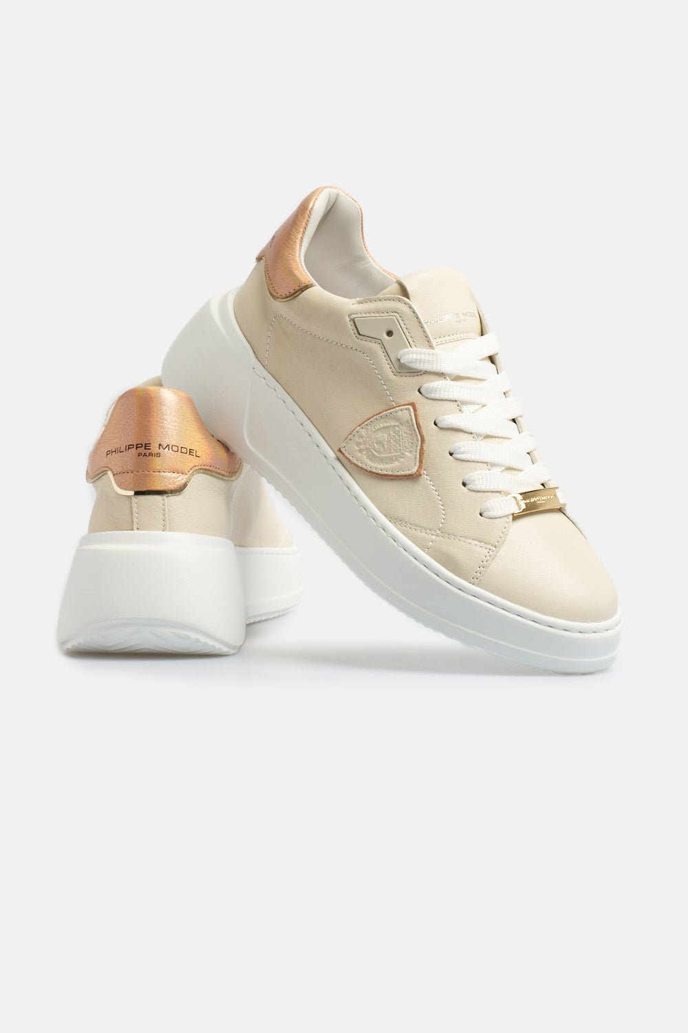 Temple Philippe Model sneaker with side Shield logo detail, leather upper, striped sole with logo, logo on the front and on the spoiler, rounded toe, flat cotton laces, regular fit.
