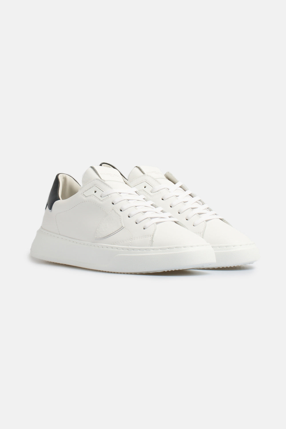 Temple Philippe Model sneakers, upper made of calfskin, white cotton laces, black logo spoiler, logo tongue, rubber sole