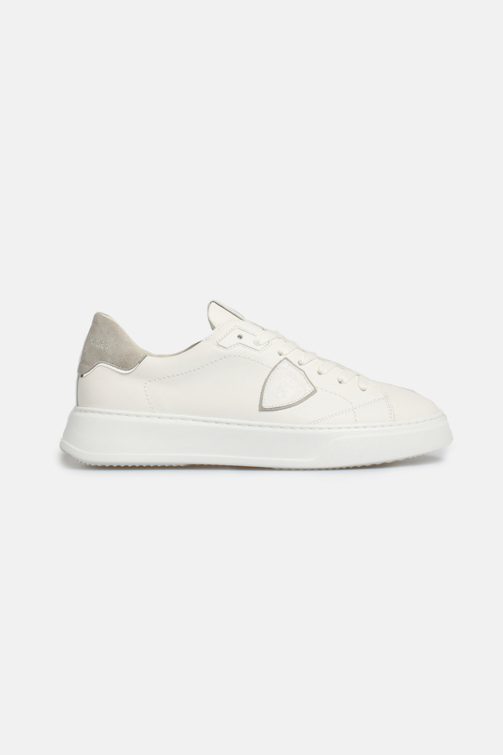 Temple Philippe Model sneakers, upper made of calfskin, white cotton laces, grey logo spoiler, logo tongue, rubber sole