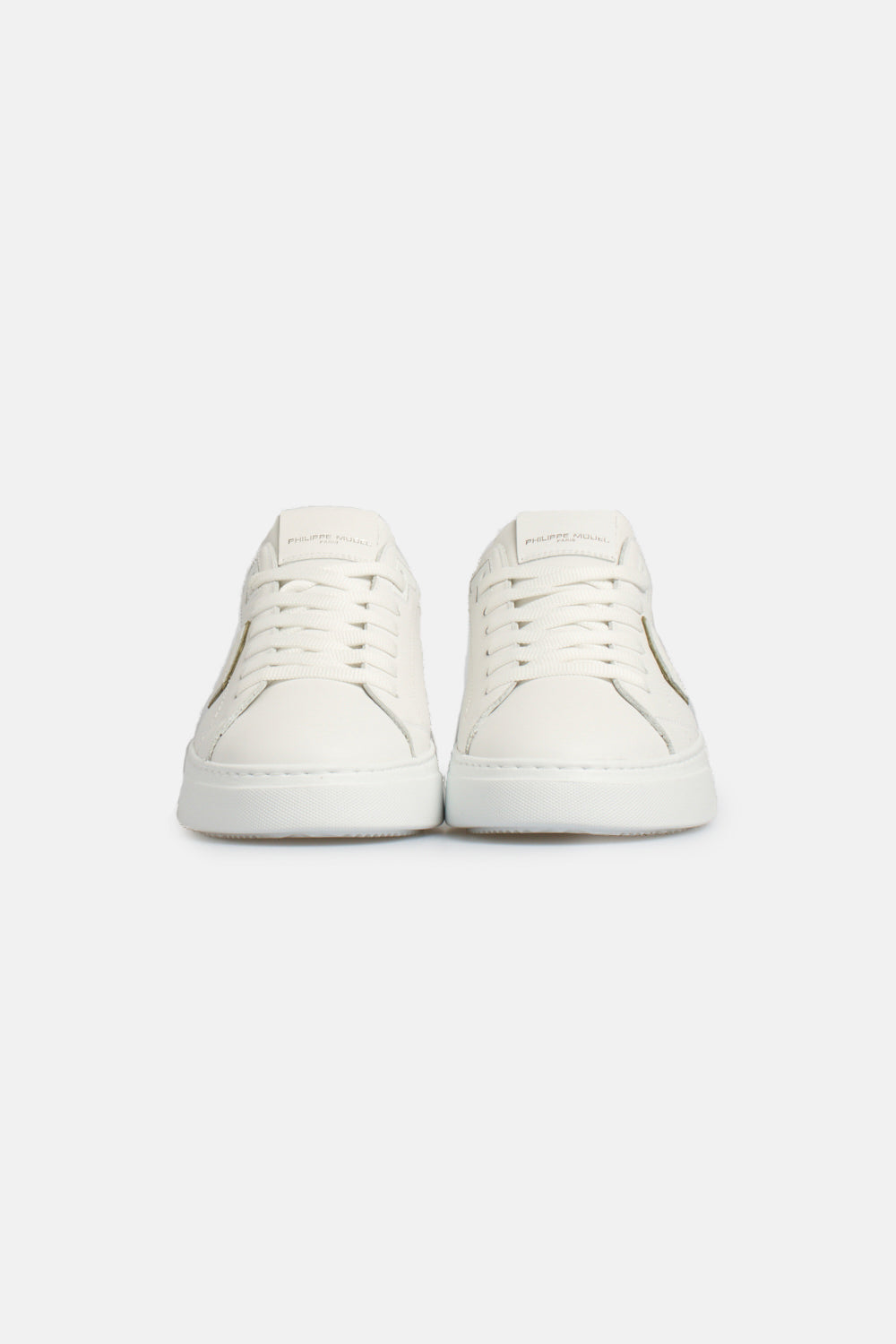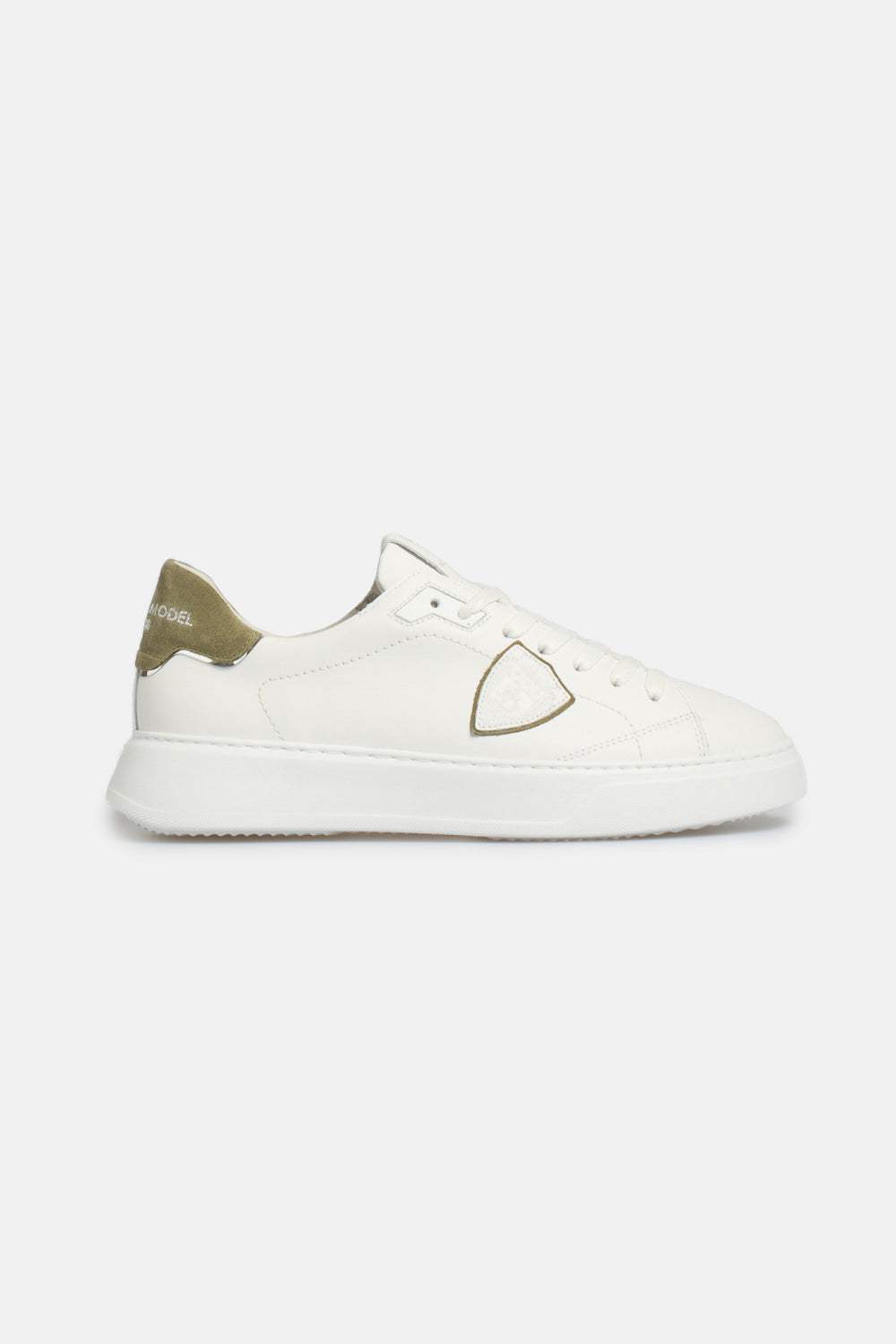Temple Philippe Model sneakers, upper made of calfskin, white cotton laces, green logo spoiler, logo tongue, rubber sole
