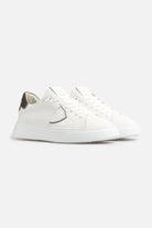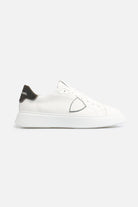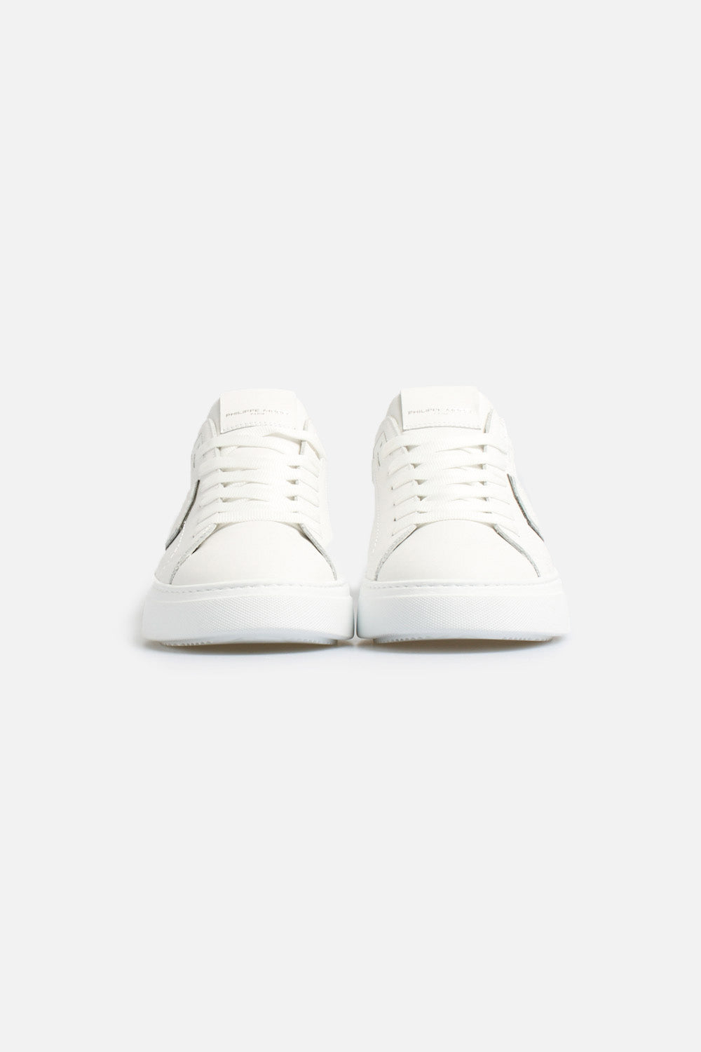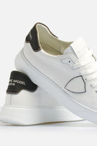 Philippe Model Temple sneakers, upper made of calfskin, white cotton laces, brown vintage-effect spoiler on the back, logo tongue, rubber sole