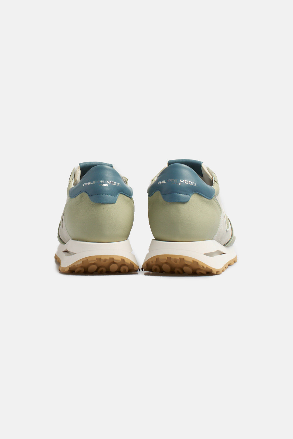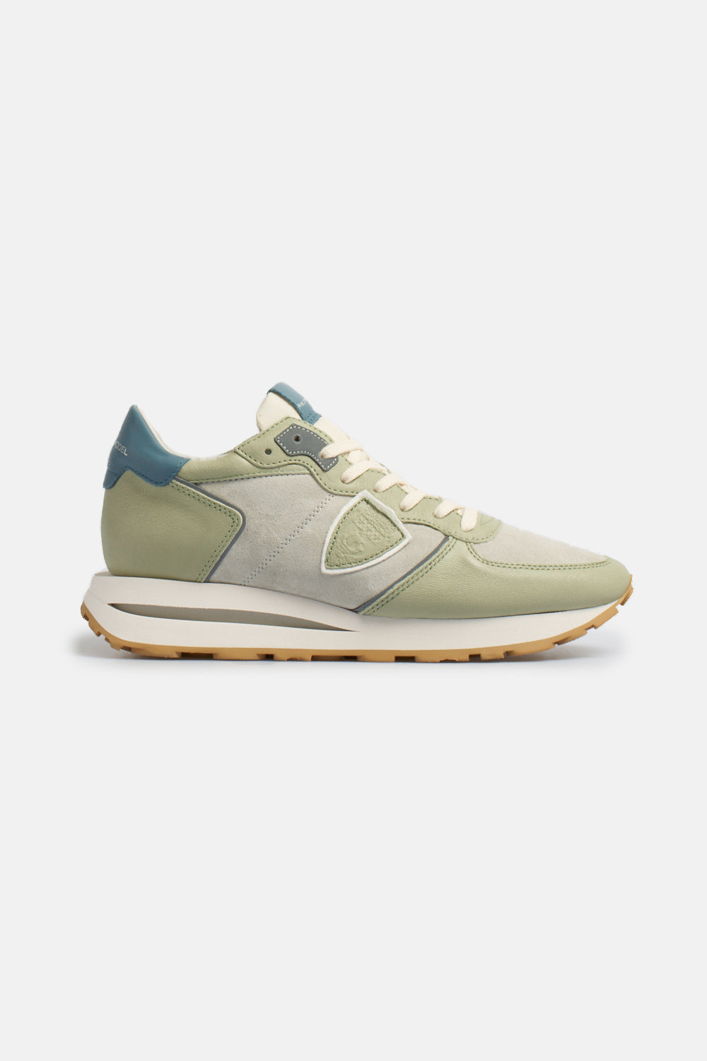 Philippe Model sneakers with leather upper, side shield logo, microporous rubber sole with three-dimensional insert under the heel, flat cotton laces