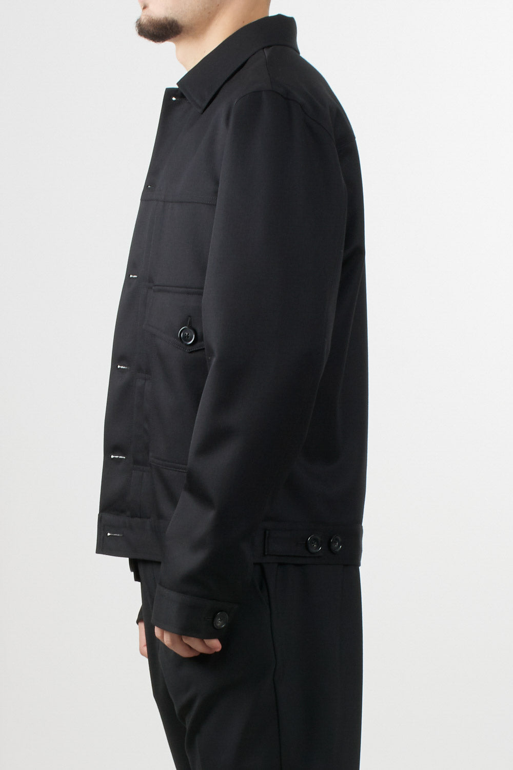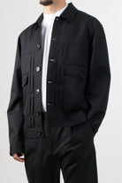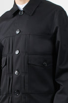 A contemporary jacket with stitching and a field jacket-inspired construction. The style features a front button closure, patch pockets with flaps, and vertical seams that define the garment's structure. Ideal for completing sophisticated, urban looks with a modern touch.