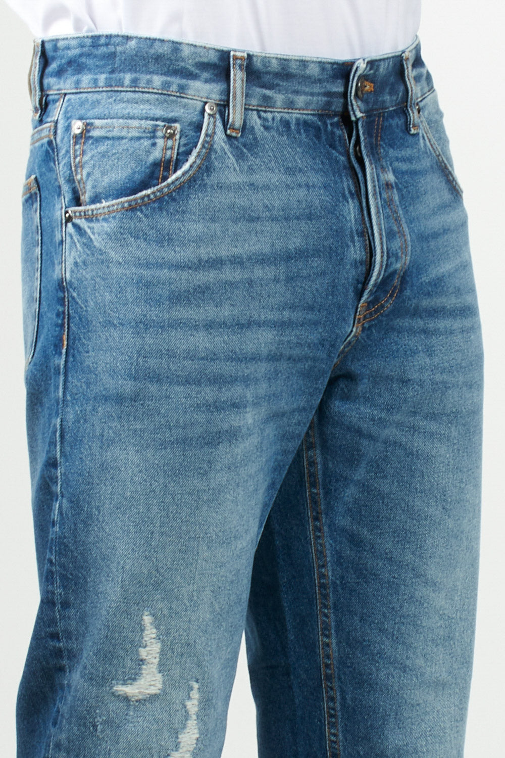 Pt Torino jeans with a worn effect and rips on the front, regular waist, button and zip fastening, five pockets and logo label applied on the back.