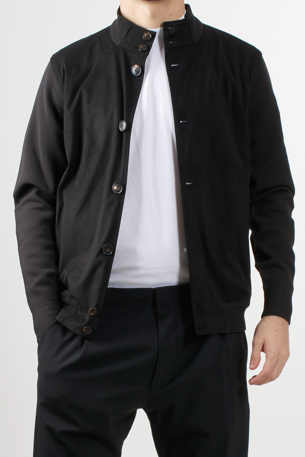 RRD mid-season jacket with an urban and refined design. Made of technical eco suede with a nubuck effect. Regular fit, horn button placket, and stretch English rib collar and trim. Orange piping on the back and black micro-injected logo on the left sleeve.