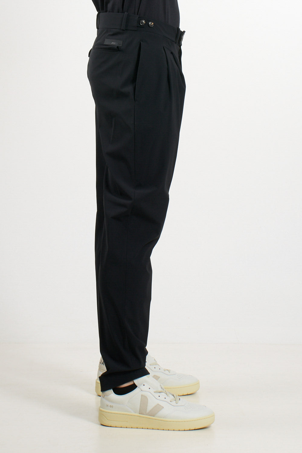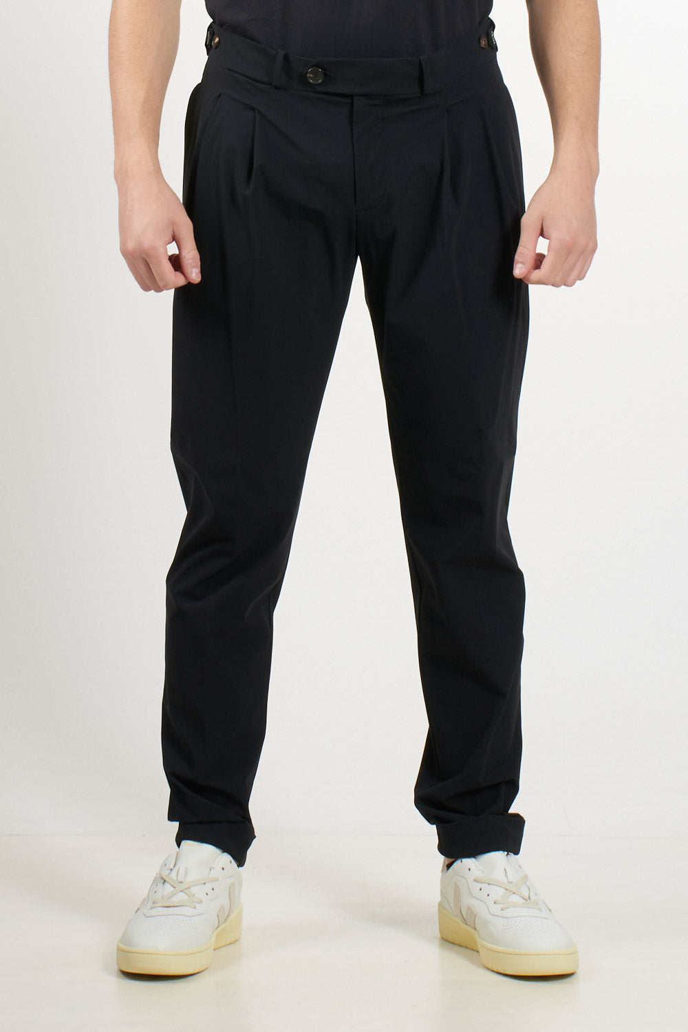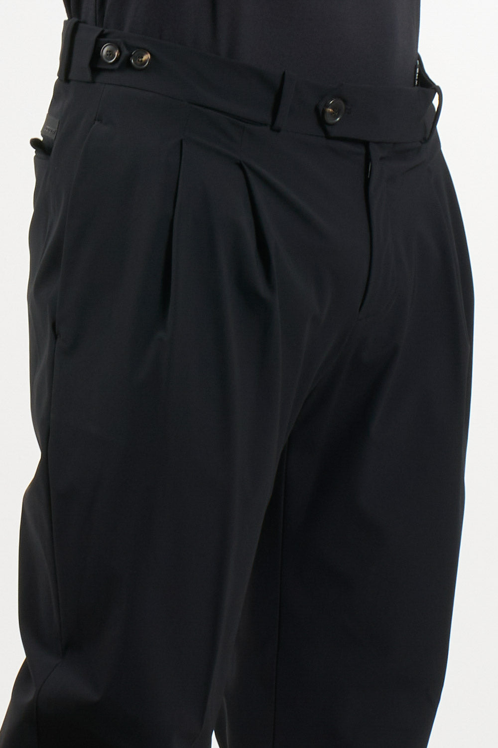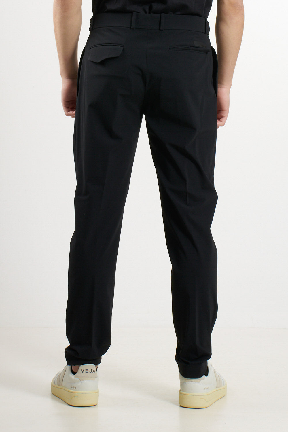 These RRD trousers with pleats are the perfect synthesis between sartorial style and contemporary functionality. Made of technical stretch fabric, they are designed to offer comfort and freedom of movement, maintaining an elegant look thanks to the double front pleats and the refined details.