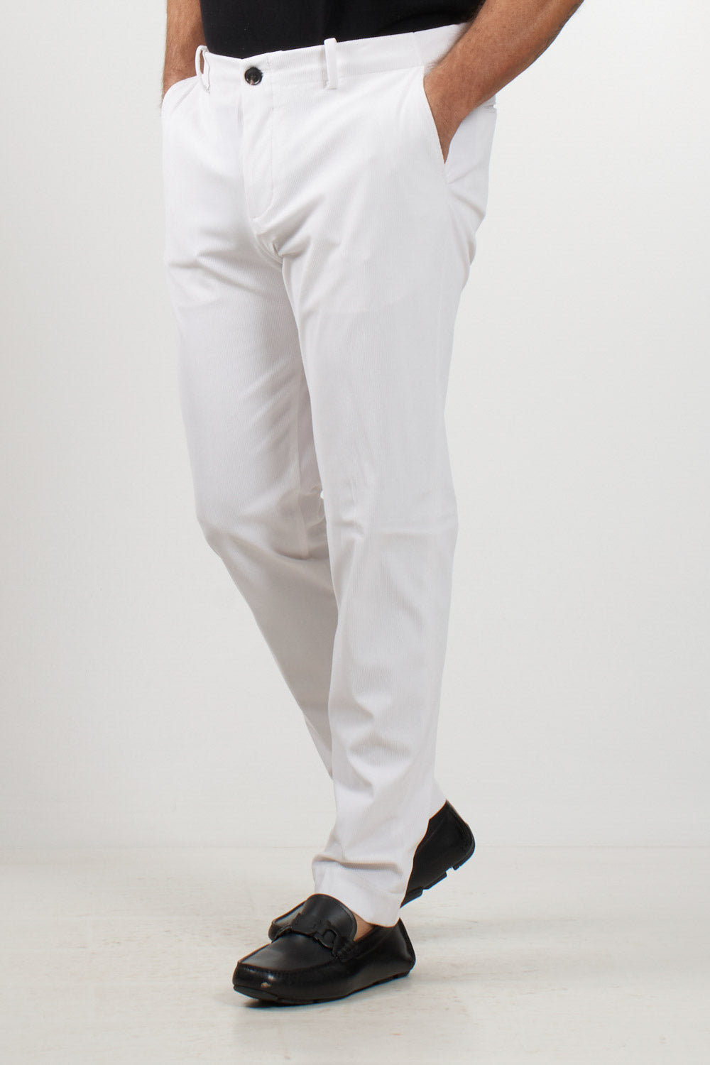 RRD regular-fit straight-leg trousers crafted from exclusive SURFLEX stretch fabric with faded pigments, featuring a flocked, velvet-effect design with a soft-touch feel and wrinkle-resistant, easy-care properties. Belt loops, a button fly with a horn button, side slant pockets, and rear welt pockets. Perfect for refined casual looks, these trousers combine elegance and comfort for every occasion.